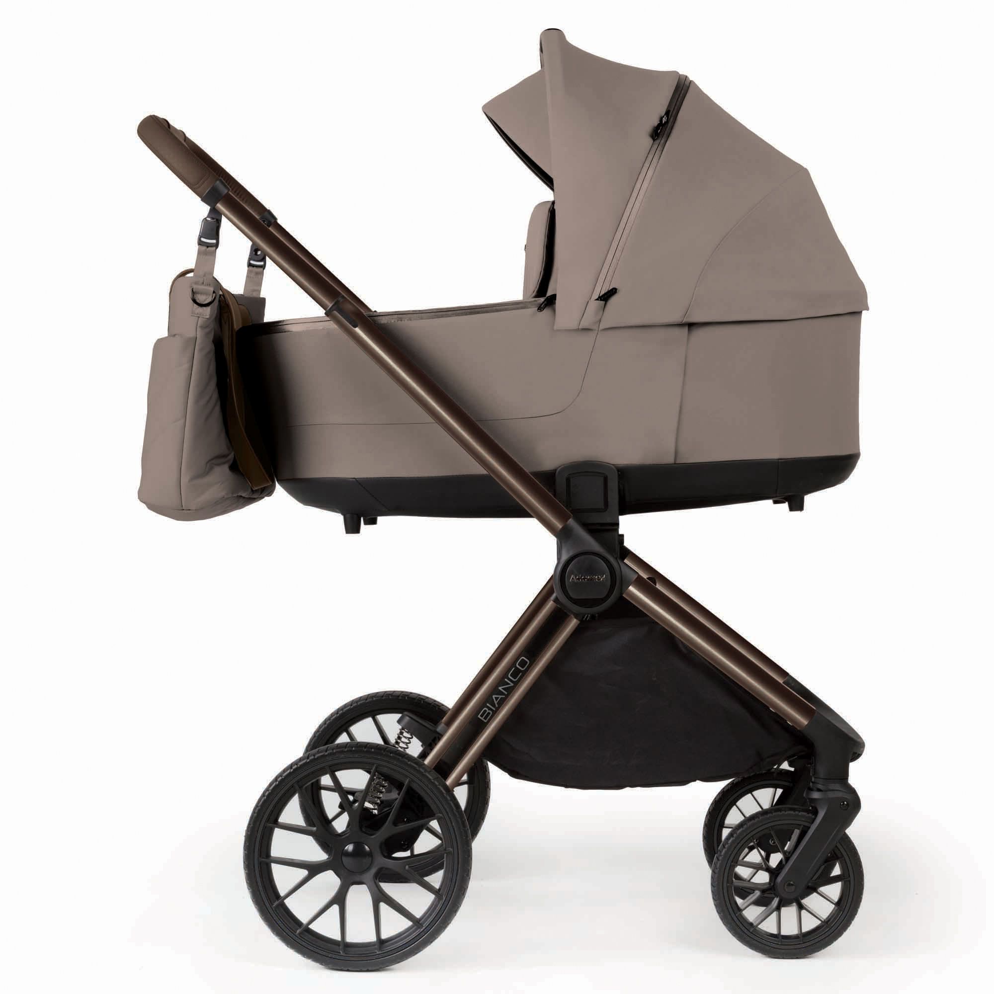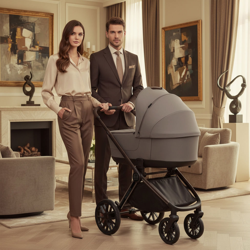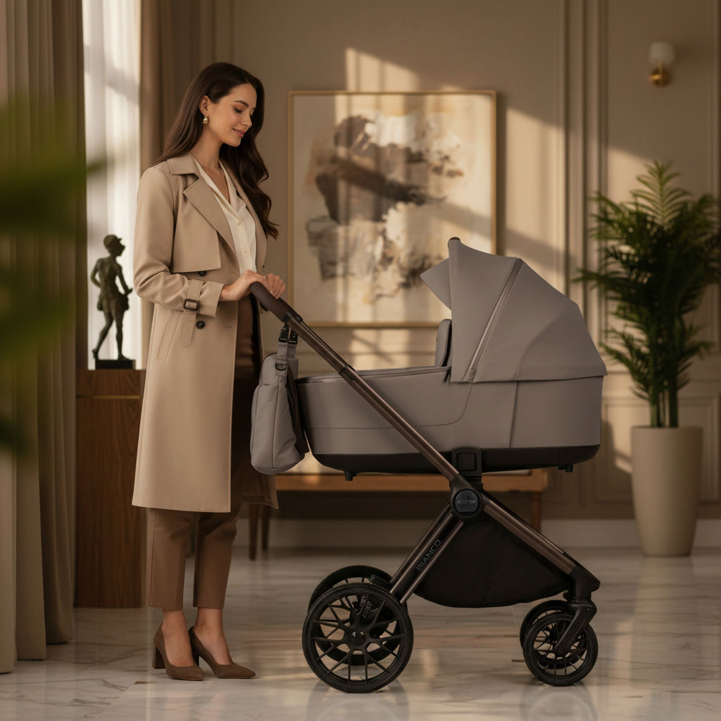 Wózek Adamex BIANCO 2w1 to połączenie przemyślanych rozwiązań i stylowego designu. Harmonijna paleta kolorów ziemi, idealnie dobrane odcienie stelaża i tkanin oraz eleganckie detale tworzą spójną, estetyczną całość. Budka gondoli wyposażona jest przedłużany klin oraz klin wentylacyjny z moskitierą, umożliwiający odpowiednią cyrkulację powietrza. W budce gondoli znajduje się blenda przeciwsłoneczna, która jest niezastąpiona podczas słonecznych dni. W tylnej części gondoli znajduje się okienko wentylacyjne, a we wnętrzu gondoli znajduje się gruby, piankowy materac, który gwarantuje maluszkowi spokojny sen i wygodę. W gondoli znajduje się również regulowany zagłówek, który dopasujesz do etapu rozwoju dziecka i wesprzesz jego prawidłową pozycję. Miękka gondola składa się na płasko, co pozwala zaoszczędzić przestrzeń w bagażniku – idealne rozwiązanie podczas podróży. Budka spacerówki wyposażona jest w okienko wentylacyjne z moskitierą oraz dodatkowy, przedłużany za pomocą zamka klin. Oparcie spacerówki można regulować w 3 poziomach, co umożliwia wygodne dostosowanie do potrzeb dziecka. Barierka siedziska jest obrotowa i uchylna, a podnóżek ma trzy stopnie regulacji. Dodatkowo, spacerówka posiada 5-punktowe pasy bezpieczeństwa z klamrą magnetyczną i miękkimi nakładkami oraz wygodny, miękki materacyk. Spacerówkę można zamontować w obu kierunkach, a co ważniejsze, możesz ją złożyć wraz ze stelażem, bez względu na kierunek zamontowania. Dzięki przedniej i tylnej amortyzacji wózek zapewnia komfortową jazdę po wszystkich nawierzchniach, a teleskopowa rączka z szerokim zakresem regulacji dostosowuje się do wzrostu każdego rodzica. Duży kosz na zakupy z wygodnym zapięciem magnetycznym oraz nieprzebijalne i bezobsługowe koła z pianki PU umożliwiają łatwą jazdę, a dodatkowa blokada kół do jazdy na wprost zwiększa komfort prowadzenia wózka.