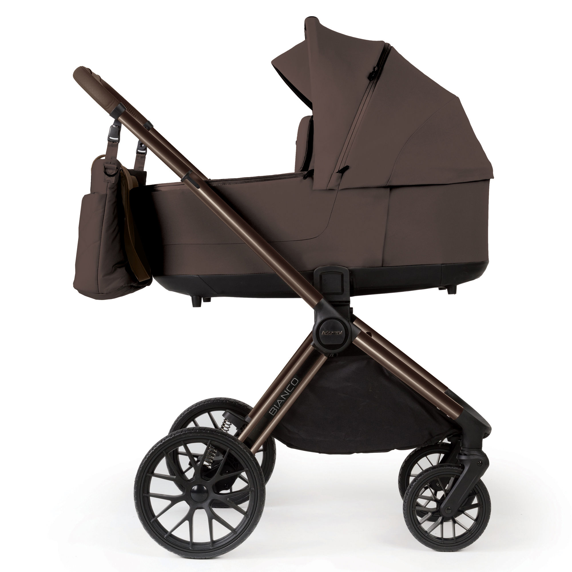 Wózek Adamex BIANCO 2w1 to połączenie przemyślanych rozwiązań i stylowego designu. Harmonijna paleta kolorów ziemi, idealnie dobrane odcienie stelaża i tkanin oraz eleganckie detale tworzą spójną, estetyczną całość. Budka gondoli wyposażona jest przedłużany klin oraz klin wentylacyjny z moskitierą, umożliwiający odpowiednią cyrkulację powietrza. W budce gondoli znajduje się blenda przeciwsłoneczna, która jest niezastąpiona podczas słonecznych dni. W tylnej części gondoli znajduje się okienko wentylacyjne, a we wnętrzu gondoli znajduje się gruby, piankowy materac, który gwarantuje maluszkowi spokojny sen i wygodę. W gondoli znajduje się również regulowany zagłówek, który dopasujesz do etapu rozwoju dziecka i wesprzesz jego prawidłową pozycję. Miękka gondola składa się na płasko, co pozwala zaoszczędzić przestrzeń w bagażniku – idealne rozwiązanie podczas podróży. Budka spacerówki wyposażona jest w okienko wentylacyjne z moskitierą oraz dodatkowy, przedłużany za pomocą zamka klin. Oparcie spacerówki można regulować w 3 poziomach, co umożliwia wygodne dostosowanie do potrzeb dziecka. Barierka siedziska jest obrotowa i uchylna, a podnóżek ma trzy stopnie regulacji. Dodatkowo, spacerówka posiada 5-punktowe pasy bezpieczeństwa z klamrą magnetyczną i miękkimi nakładkami oraz wygodny, miękki materacyk. Spacerówkę można zamontować w obu kierunkach, a co ważniejsze, możesz ją złożyć wraz ze stelażem, bez względu na kierunek zamontowania. Dzięki przedniej i tylnej amortyzacji wózek zapewnia komfortową jazdę po wszystkich nawierzchniach, a teleskopowa rączka z szerokim zakresem regulacji dostosowuje się do wzrostu każdego rodzica. Duży kosz na zakupy z wygodnym zapięciem magnetycznym oraz nieprzebijalne i bezobsługowe koła z pianki PU umożliwiają łatwą jazdę, a dodatkowa blokada kół do jazdy na wprost zwiększa komfort prowadzenia wózka.