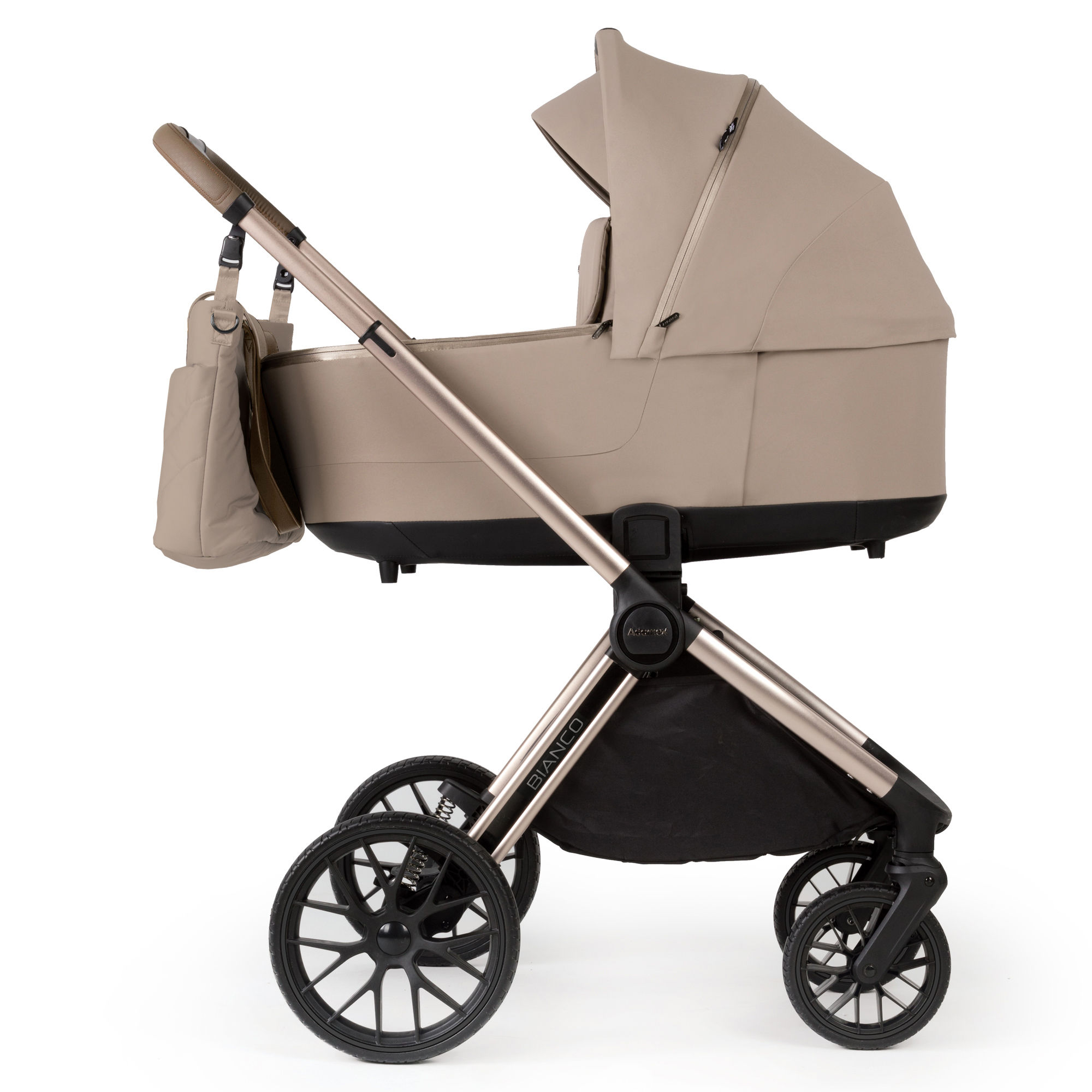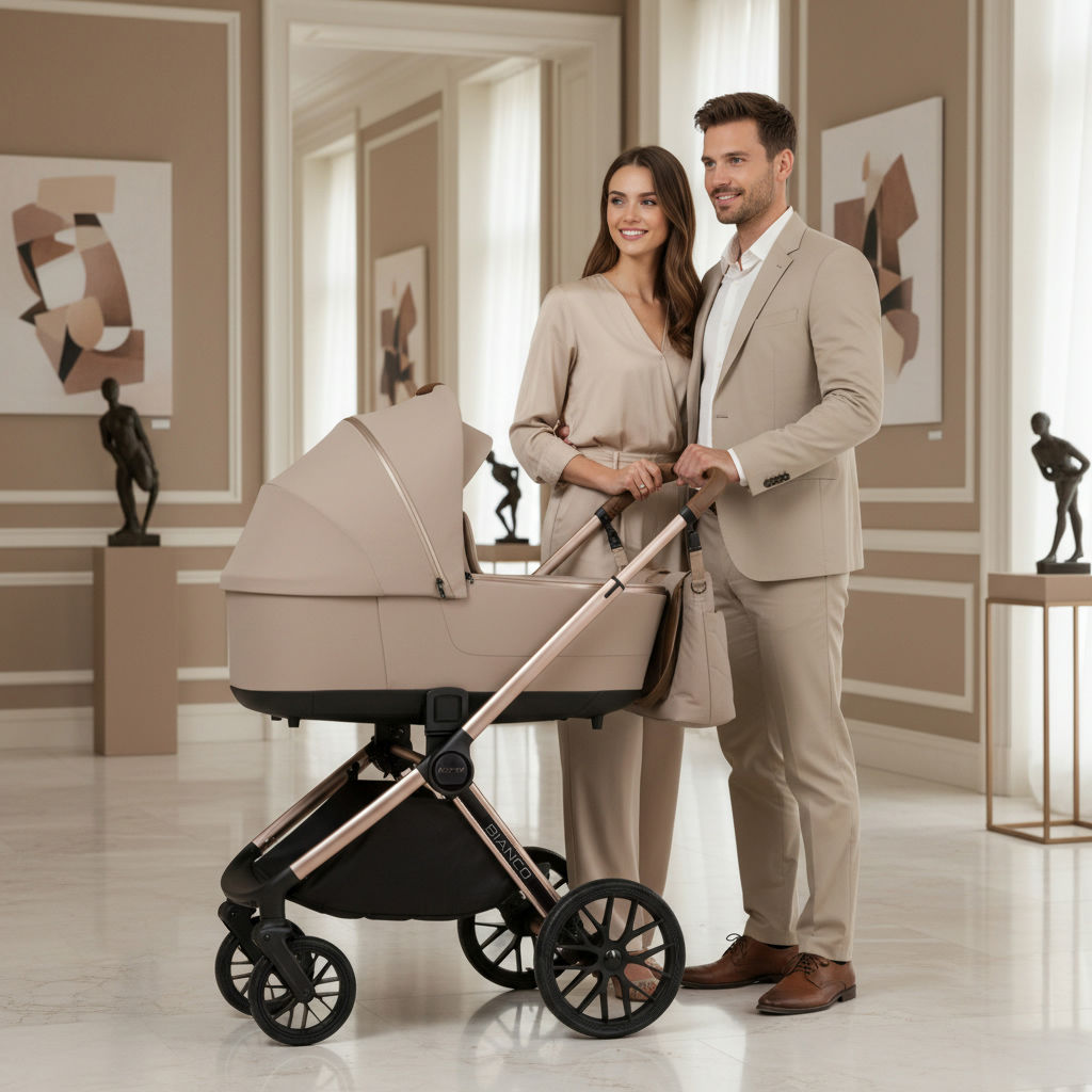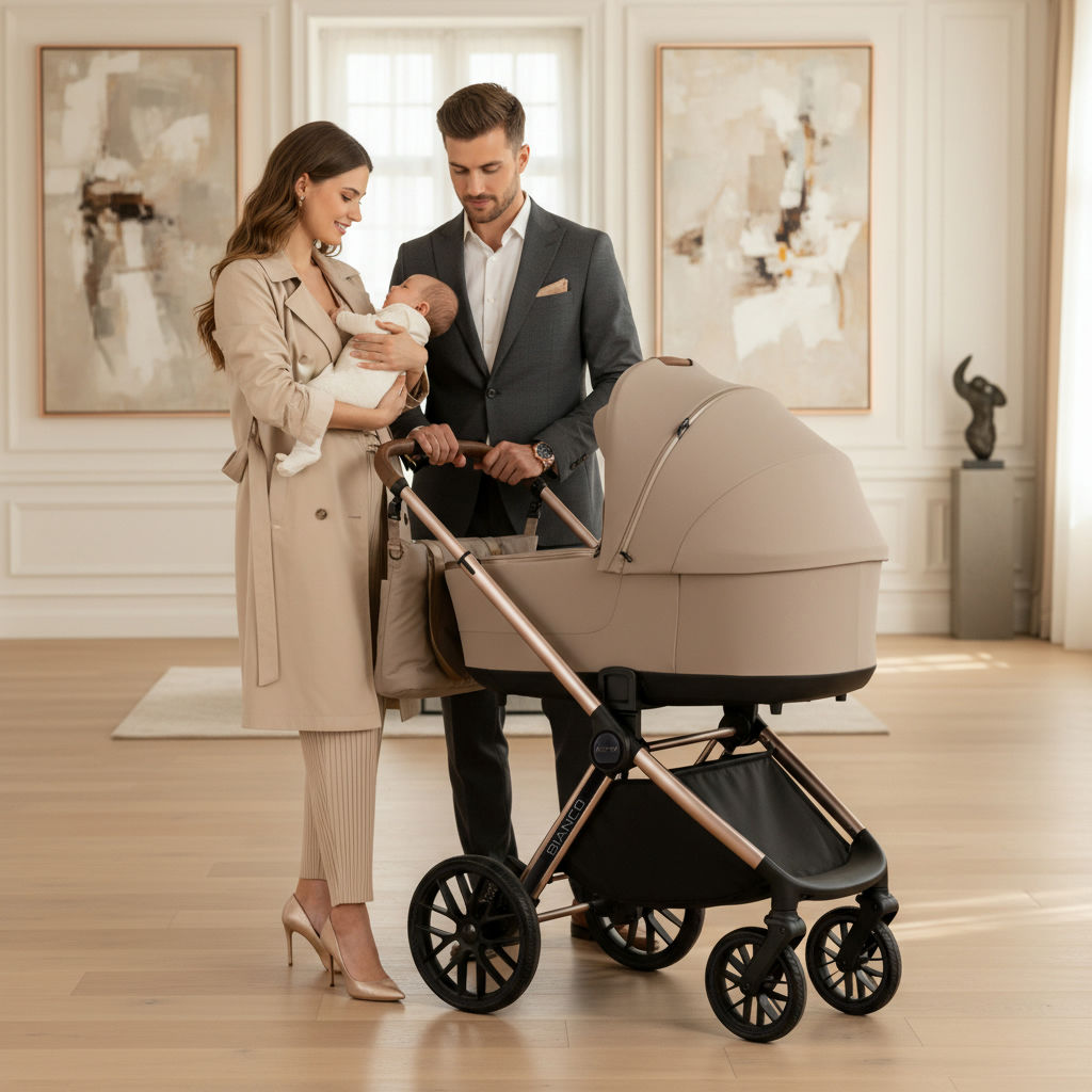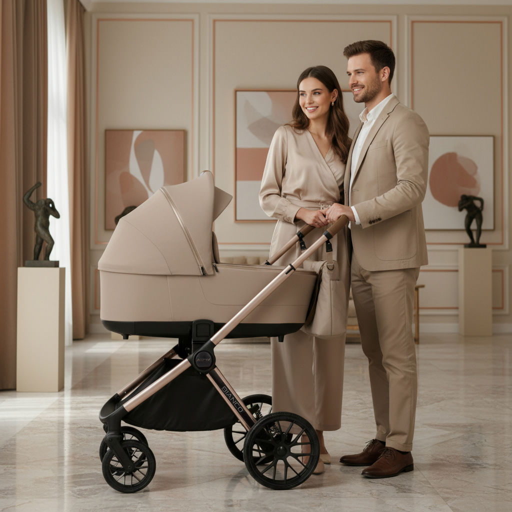 Wózek Adamex BIANCO 2w1 to połączenie przemyślanych rozwiązań i stylowego designu. Harmonijna paleta kolorów ziemi, idealnie dobrane odcienie stelaża i tkanin oraz eleganckie detale tworzą spójną, estetyczną całość. Budka gondoli wyposażona jest przedłużany klin oraz klin wentylacyjny z moskitierą, umożliwiający odpowiednią cyrkulację powietrza. W budce gondoli znajduje się blenda przeciwsłoneczna, która jest niezastąpiona podczas słonecznych dni. W tylnej części gondoli znajduje się okienko wentylacyjne, a we wnętrzu gondoli znajduje się gruby, piankowy materac, który gwarantuje maluszkowi spokojny sen i wygodę. W gondoli znajduje się również regulowany zagłówek, który dopasujesz do etapu rozwoju dziecka i wesprzesz jego prawidłową pozycję. Miękka gondola składa się na płasko, co pozwala zaoszczędzić przestrzeń w bagażniku – idealne rozwiązanie podczas podróży. Budka spacerówki wyposażona jest w okienko wentylacyjne z moskitierą oraz dodatkowy, przedłużany za pomocą zamka klin. Oparcie spacerówki można regulować w 3 poziomach, co umożliwia wygodne dostosowanie do potrzeb dziecka. Barierka siedziska jest obrotowa i uchylna, a podnóżek ma trzy stopnie regulacji. Dodatkowo, spacerówka posiada 5-punktowe pasy bezpieczeństwa z klamrą magnetyczną i miękkimi nakładkami oraz wygodny, miękki materacyk. Spacerówkę można zamontować w obu kierunkach, a co ważniejsze, możesz ją złożyć wraz ze stelażem, bez względu na kierunek zamontowania. Dzięki przedniej i tylnej amortyzacji wózek zapewnia komfortową jazdę po wszystkich nawierzchniach, a teleskopowa rączka z szerokim zakresem regulacji dostosowuje się do wzrostu każdego rodzica. Duży kosz na zakupy z wygodnym zapięciem magnetycznym oraz nieprzebijalne i bezobsługowe koła z pianki PU umożliwiają łatwą jazdę, a dodatkowa blokada kół do jazdy na wprost zwiększa komfort prowadzenia wózka.