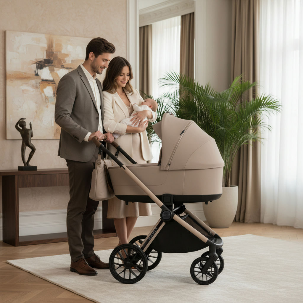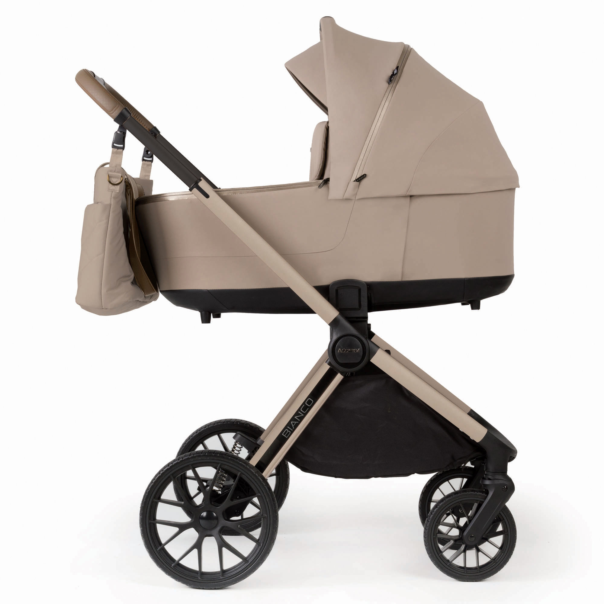 Wózek Adamex BIANCO 2w1 to połączenie przemyślanych rozwiązań i stylowego designu. Harmonijna paleta kolorów ziemi, idealnie dobrane odcienie stelaża i tkanin oraz eleganckie detale tworzą spójną, estetyczną całość. Budka gondoli wyposażona jest przedłużany klin oraz klin wentylacyjny z moskitierą, umożliwiający odpowiednią cyrkulację powietrza. W budce gondoli znajduje się blenda przeciwsłoneczna, która jest niezastąpiona podczas słonecznych dni. W tylnej części gondoli znajduje się okienko wentylacyjne, a we wnętrzu gondoli znajduje się gruby, piankowy materac, który gwarantuje maluszkowi spokojny sen i wygodę. W gondoli znajduje się również regulowany zagłówek, który dopasujesz do etapu rozwoju dziecka i wesprzesz jego prawidłową pozycję. Miękka gondola składa się na płasko, co pozwala zaoszczędzić przestrzeń w bagażniku – idealne rozwiązanie podczas podróży. Budka spacerówki wyposażona jest w okienko wentylacyjne z moskitierą oraz dodatkowy, przedłużany za pomocą zamka klin. Oparcie spacerówki można regulować w 3 poziomach, co umożliwia wygodne dostosowanie do potrzeb dziecka. Barierka siedziska jest obrotowa i uchylna, a podnóżek ma trzy stopnie regulacji. Dodatkowo, spacerówka posiada 5-punktowe pasy bezpieczeństwa z klamrą magnetyczną i miękkimi nakładkami oraz wygodny, miękki materacyk. Spacerówkę można zamontować w obu kierunkach, a co ważniejsze, możesz ją złożyć wraz ze stelażem, bez względu na kierunek zamontowania. Dzięki przedniej i tylnej amortyzacji wózek zapewnia komfortową jazdę po wszystkich nawierzchniach, a teleskopowa rączka z szerokim zakresem regulacji dostosowuje się do wzrostu każdego rodzica. Duży kosz na zakupy z wygodnym zapięciem magnetycznym oraz nieprzebijalne i bezobsługowe koła z pianki PU umożliwiają łatwą jazdę, a dodatkowa blokada kół do jazdy na wprost zwiększa komfort prowadzenia wózka.