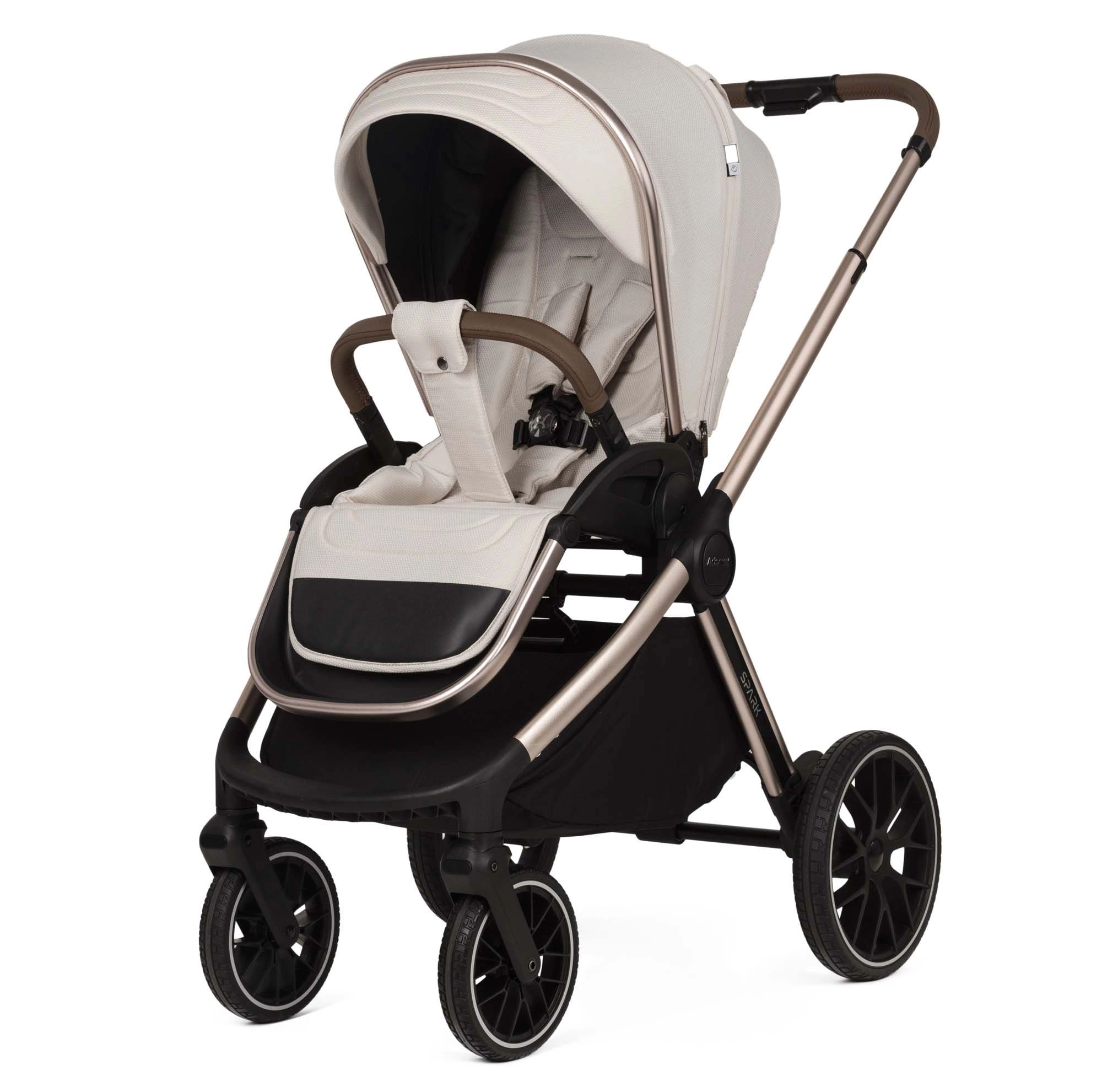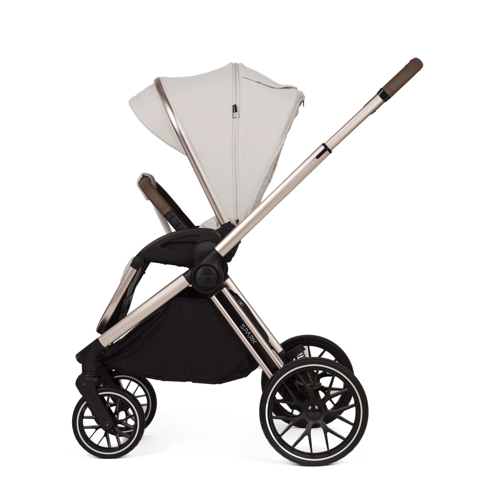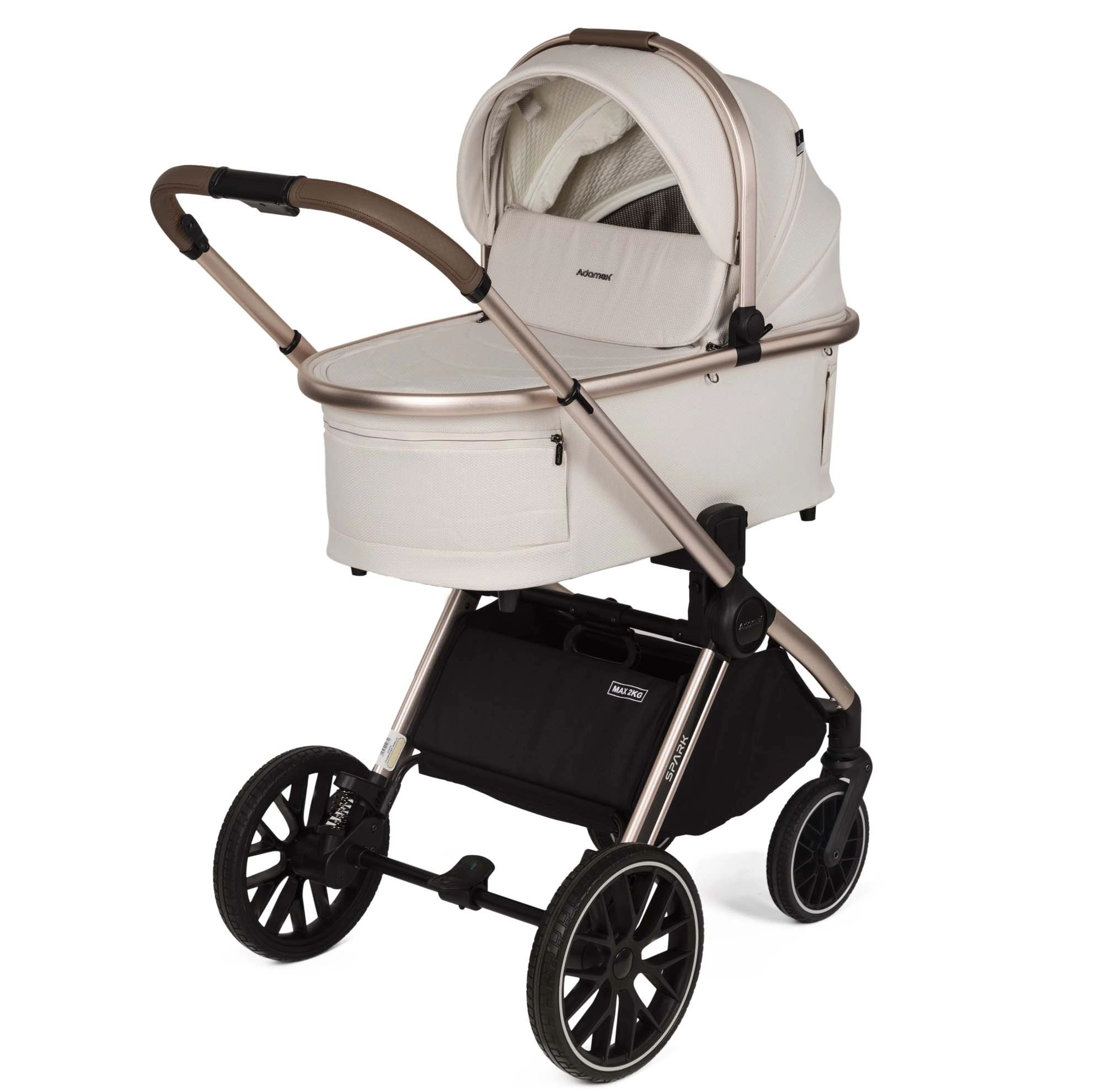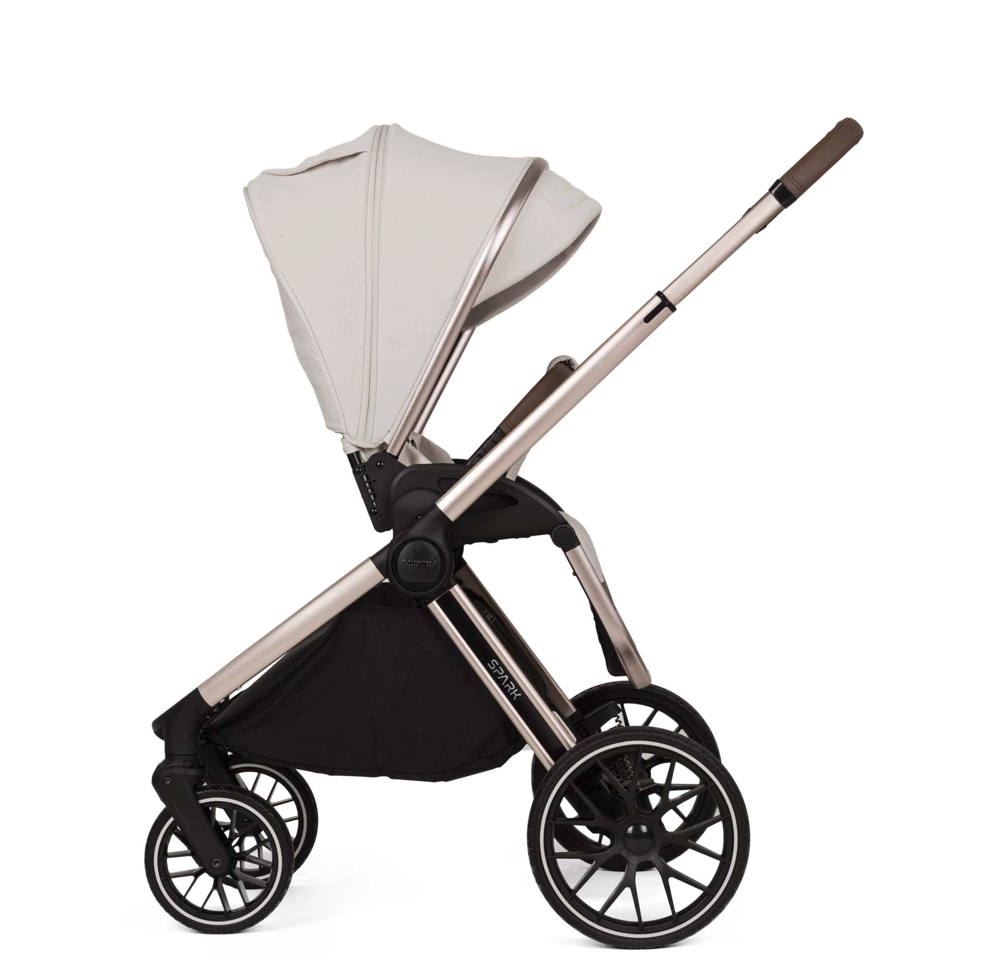 Wózek SPARK to model 2w1 charakteryzujący się funkcjonalnością oraz stylem. Został zaprojektowany z dbałością o najmniejsze detale, oferując wyjątkowy komfort zarówno dziecku, jak i rodzicom. W wersji Champagne wózek posiada anodowany stelaż w kolorze szampańskiego złota oraz eleganckie dodatki w kolorze ciemnego poleru.