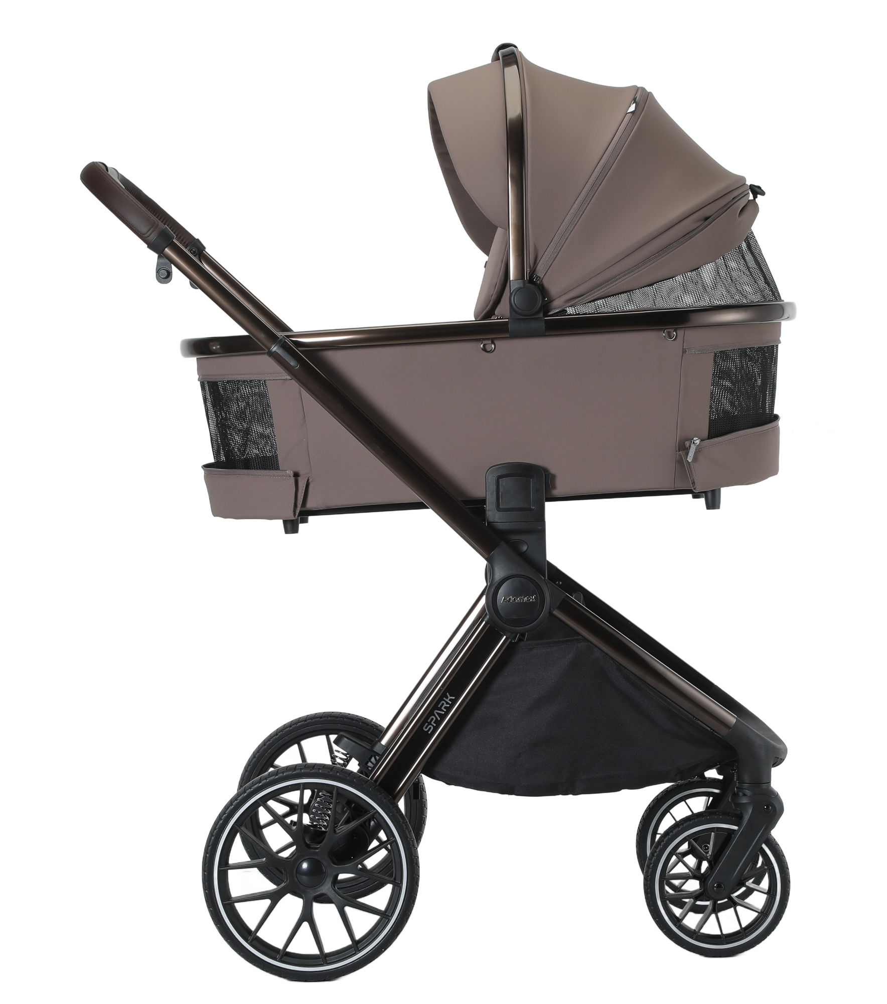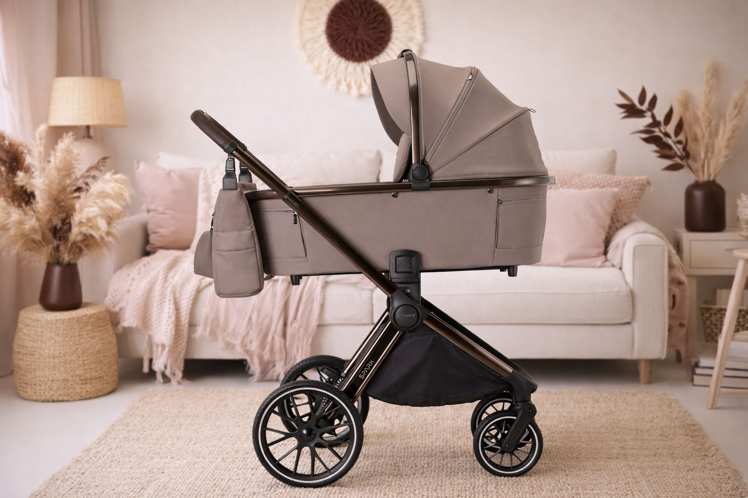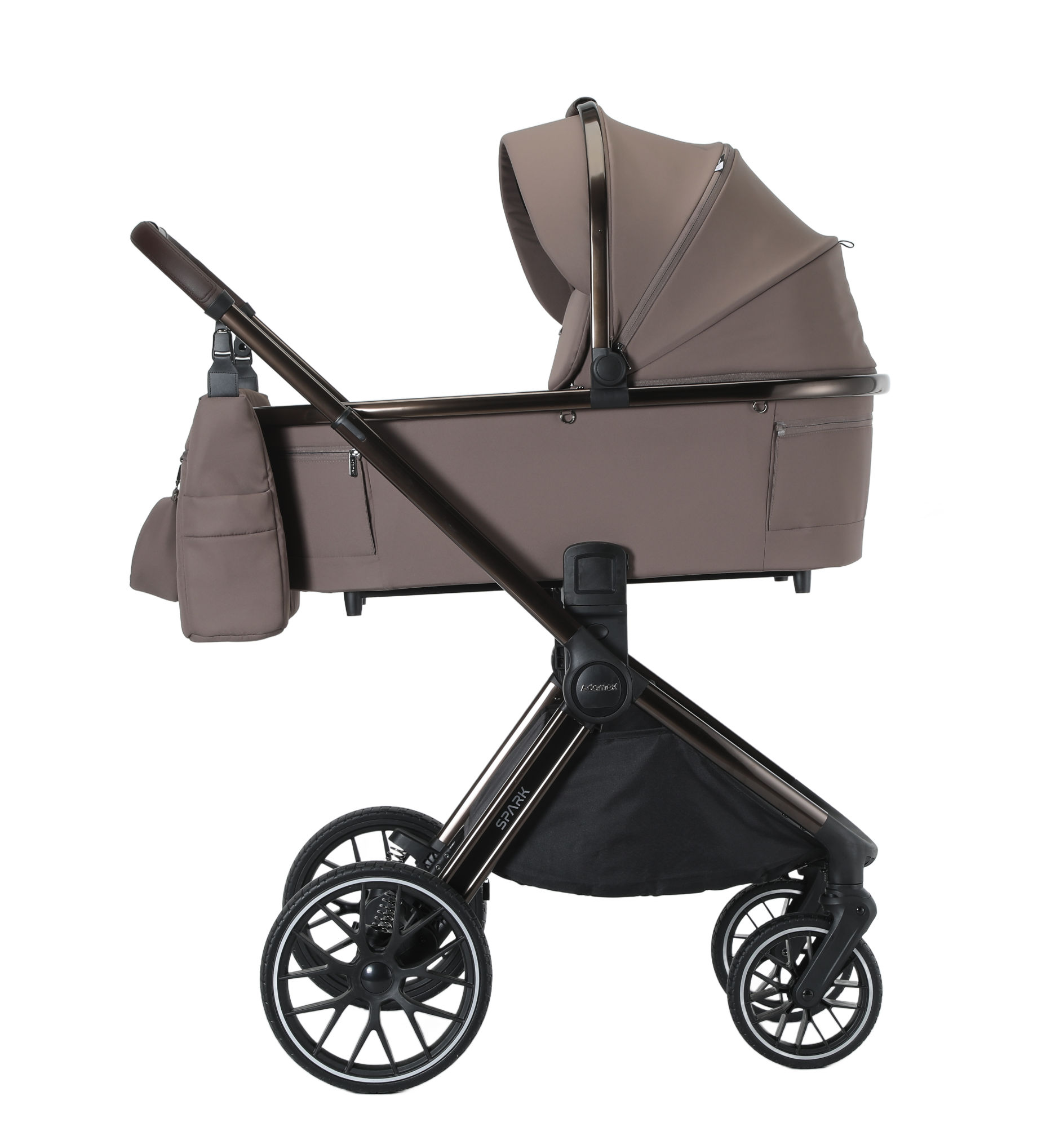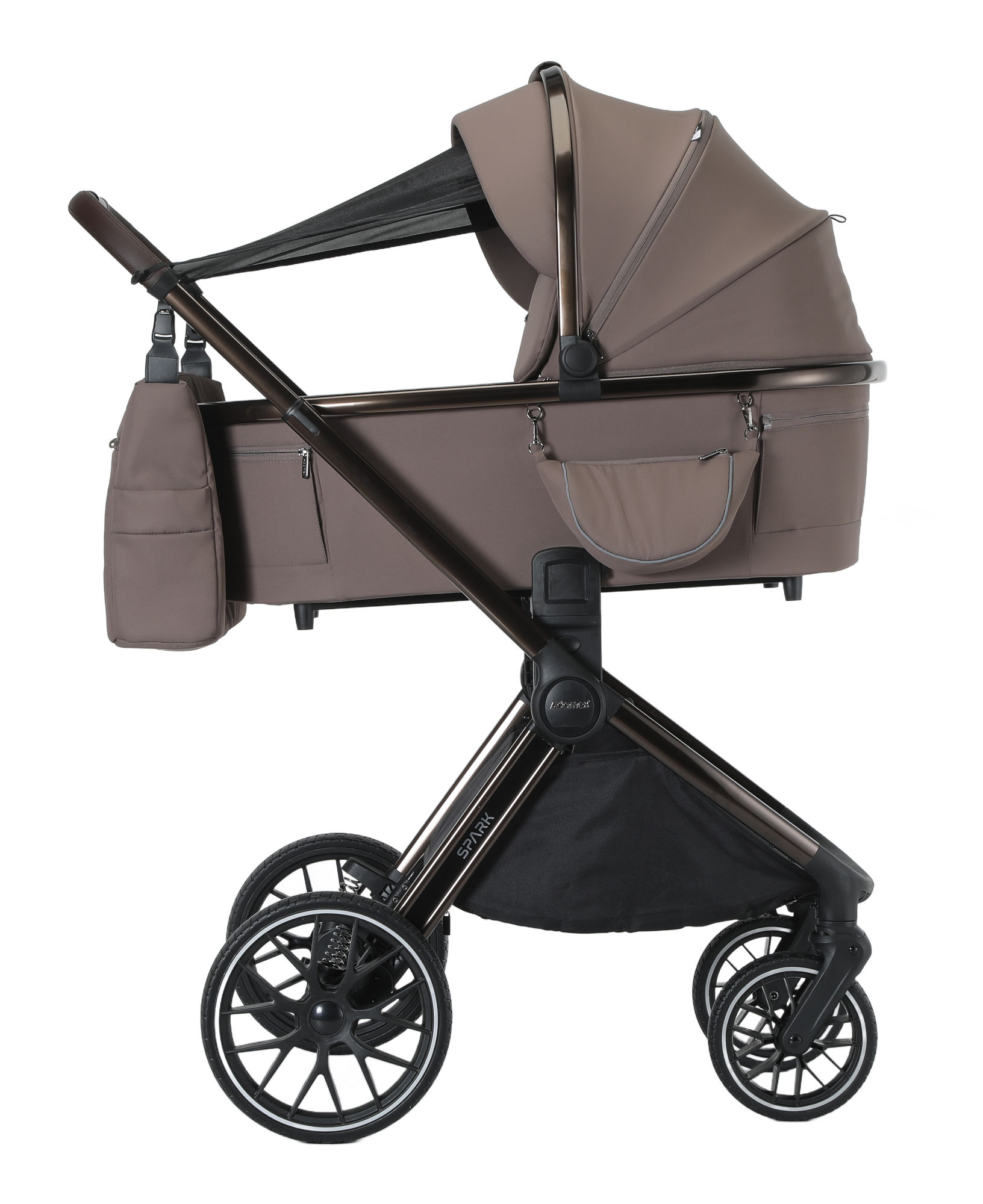 Wózek SPARK to model 2w1 charakteryzujący się funkcjonalnością oraz stylem. Został zaprojektowany z dbałością o najmniejsze detale, oferując wyjątkowy komfort zarówno dziecku, jak i rodzicom. W wersji Champagne wózek posiada anodowany stelaż w kolorze szampańskiego złota oraz eleganckie dodatki w kolorze ciemnego poleru.
