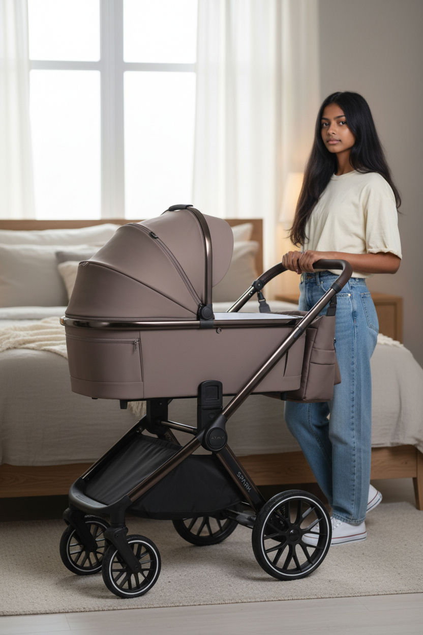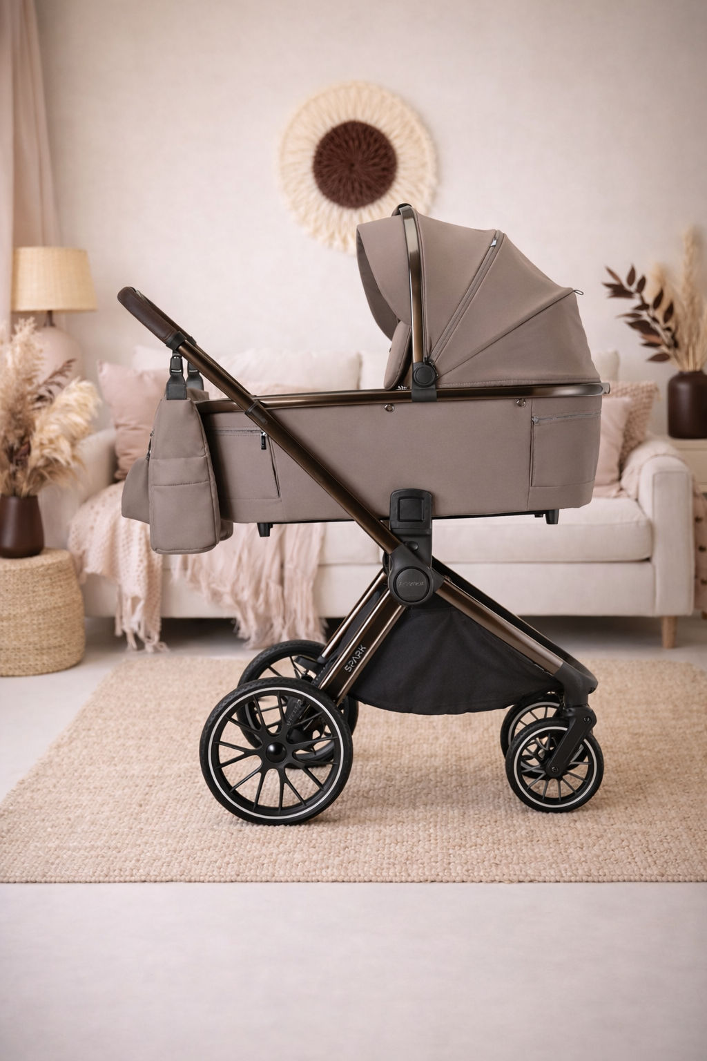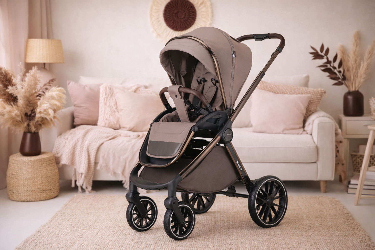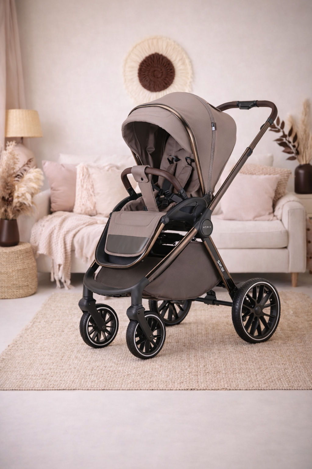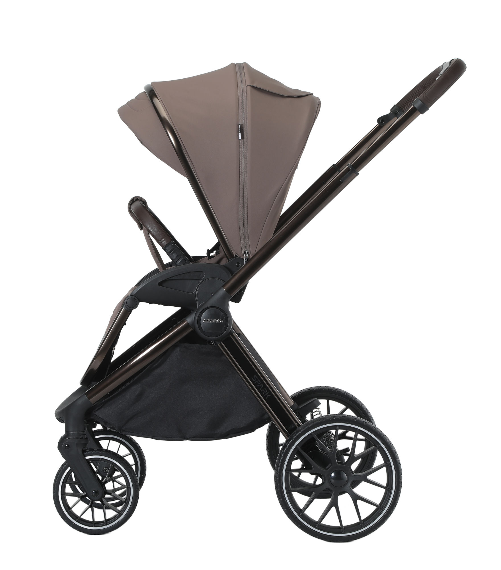 Wózek SPARK to model 2w1 charakteryzujący się funkcjonalnością oraz stylem. Został zaprojektowany z dbałością o najmniejsze detale, oferując wyjątkowy komfort zarówno dziecku, jak i rodzicom. W wersji Champagne wózek posiada anodowany stelaż w kolorze szampańskiego złota oraz eleganckie dodatki w kolorze ciemnego poleru.