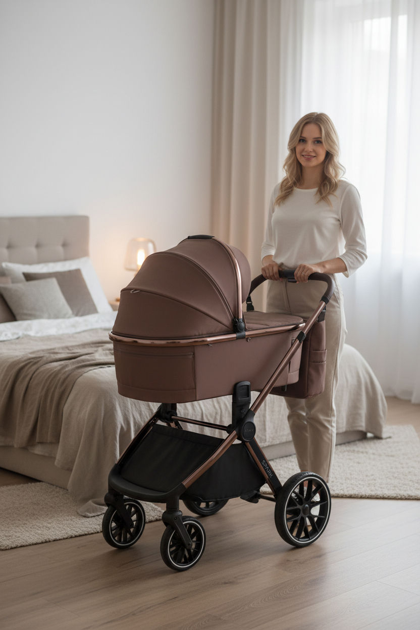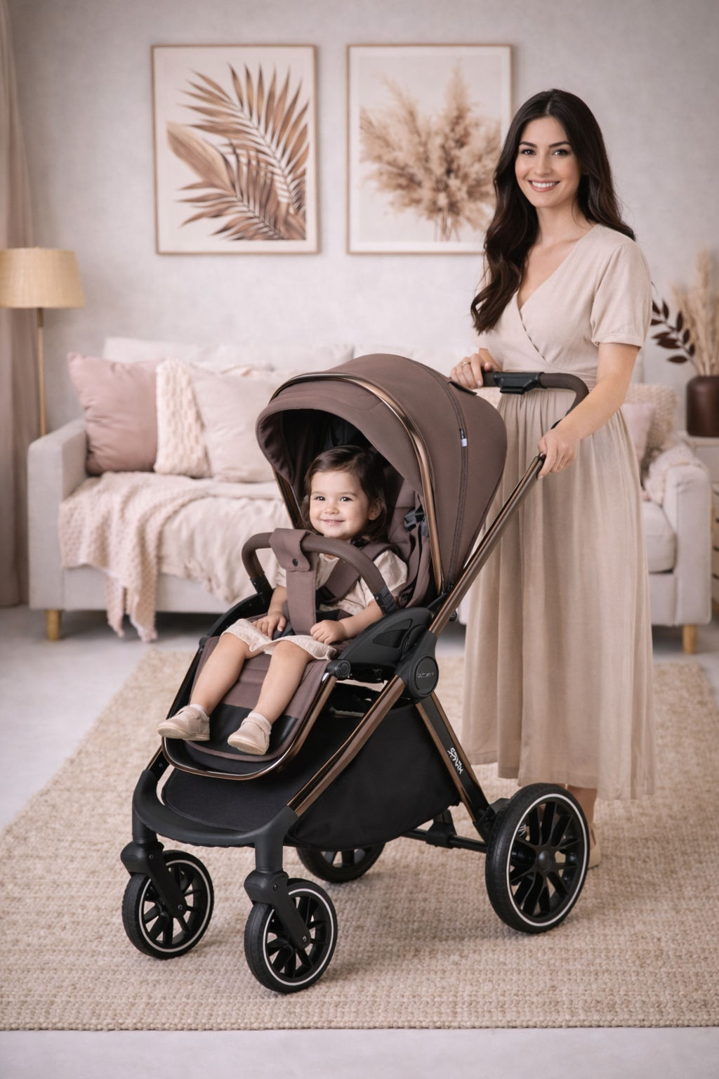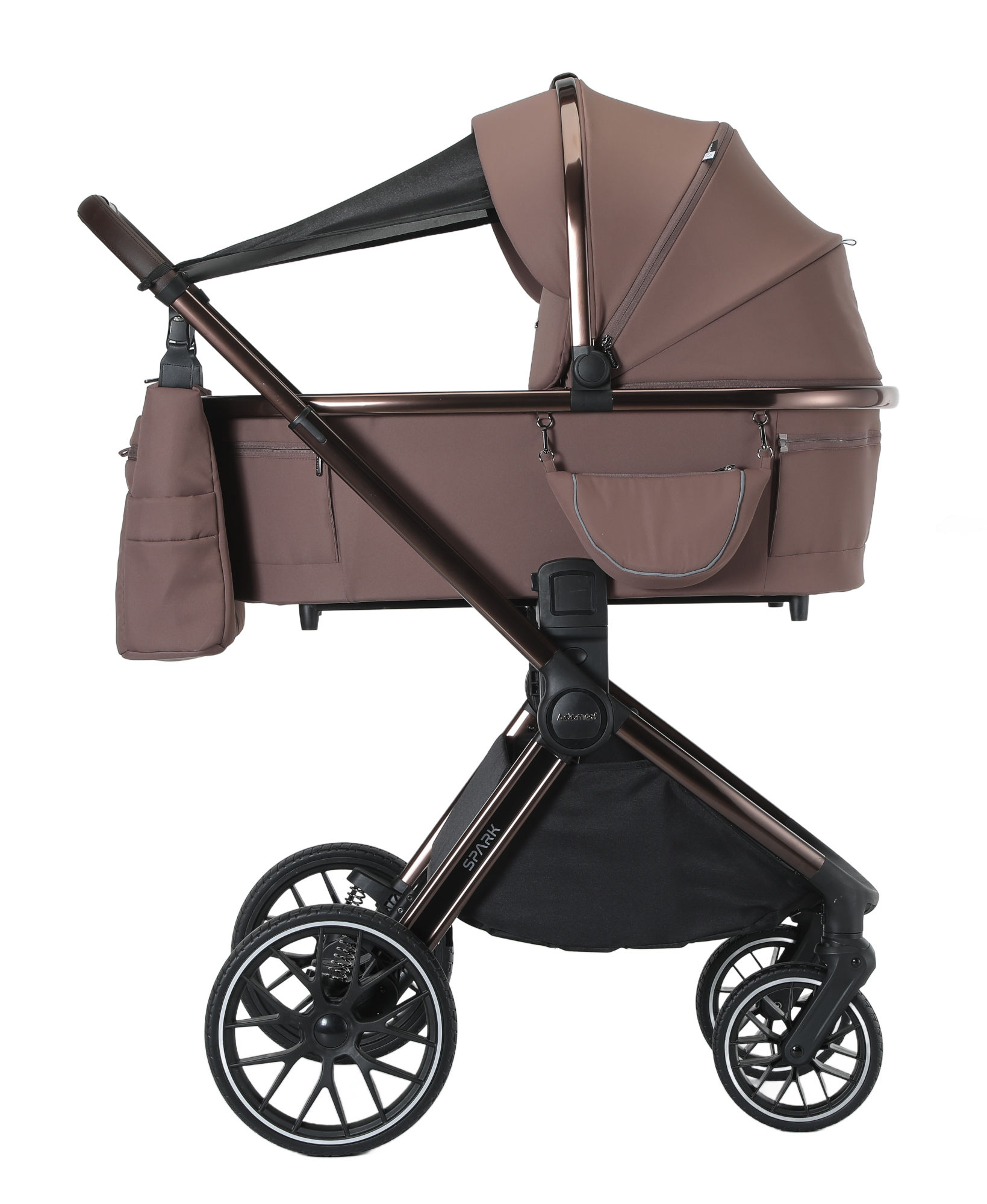 Wózek SPARK to model 2w1 charakteryzujący się funkcjonalnością oraz stylem. Został zaprojektowany z dbałością o najmniejsze detale, oferując wyjątkowy komfort zarówno dziecku, jak i rodzicom. W wersji Champagne wózek posiada anodowany stelaż w kolorze szampańskiego złota oraz eleganckie dodatki w kolorze ciemnego poleru.