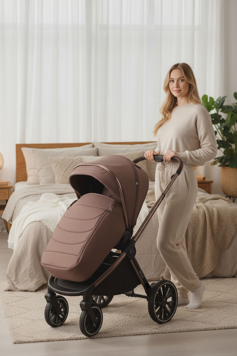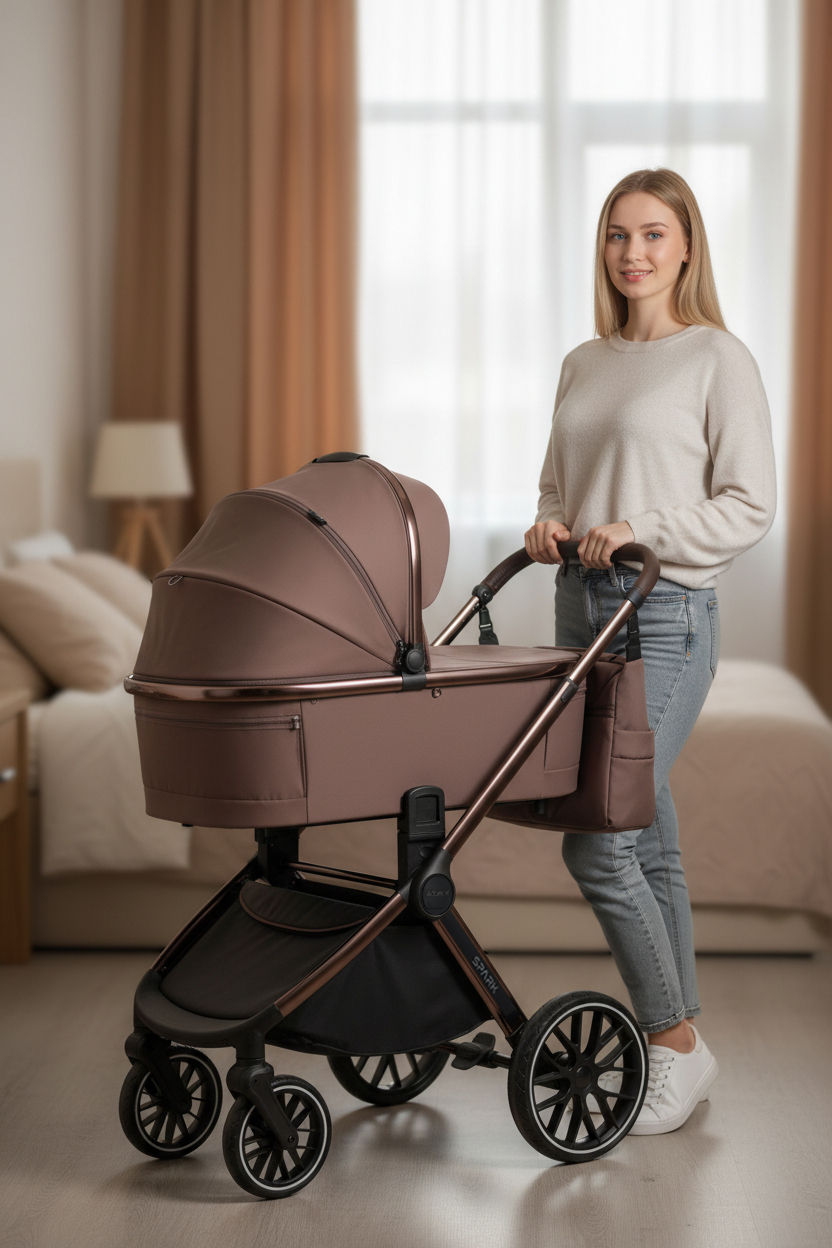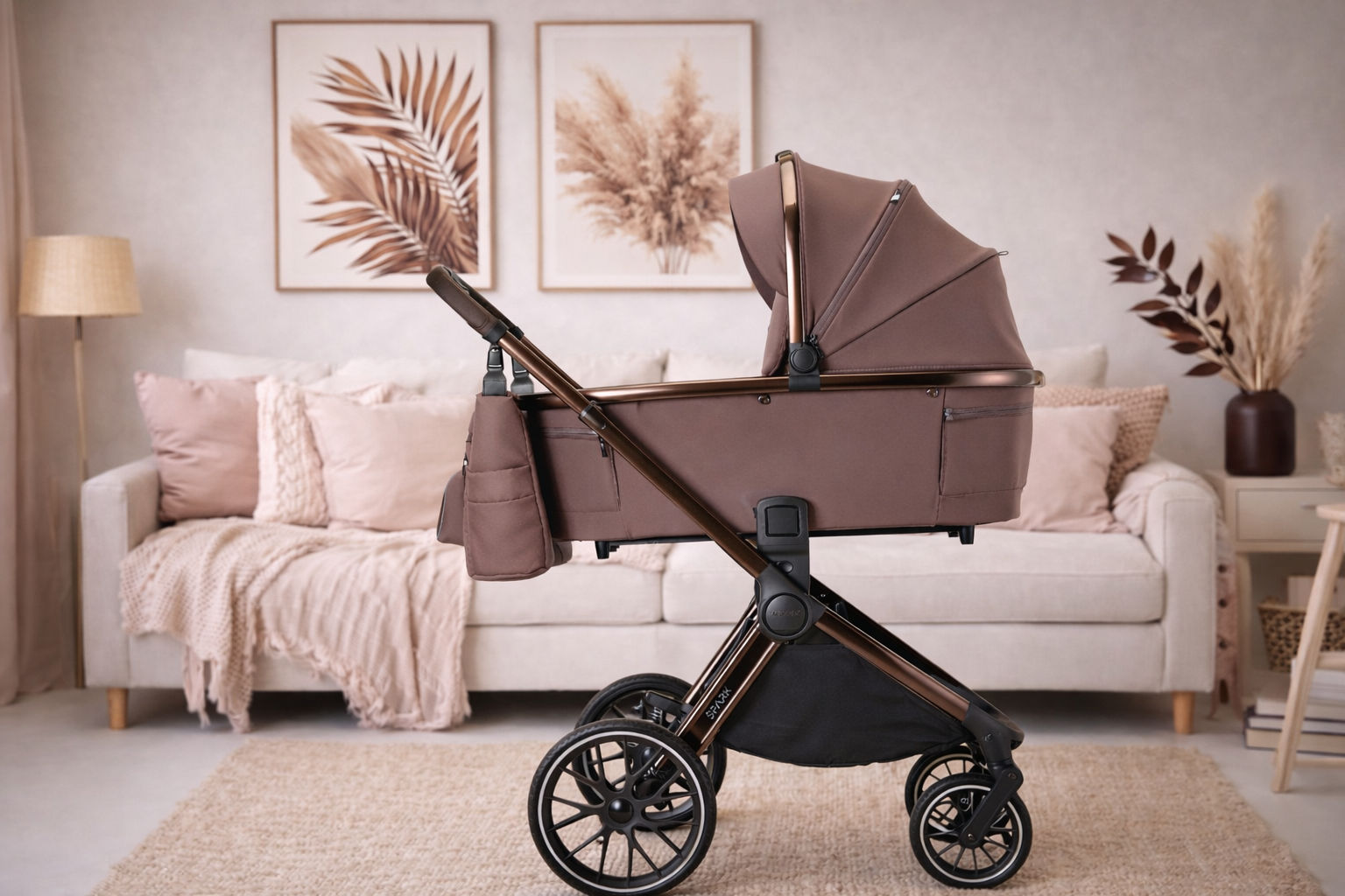Wózek SPARK to model 2w1 charakteryzujący się funkcjonalnością oraz stylem. Został zaprojektowany z dbałością o najmniejsze detale, oferując wyjątkowy komfort zarówno dziecku, jak i rodzicom. W wersji Champagne wózek posiada anodowany stelaż w kolorze szampańskiego złota oraz eleganckie dodatki w kolorze ciemnego poleru.