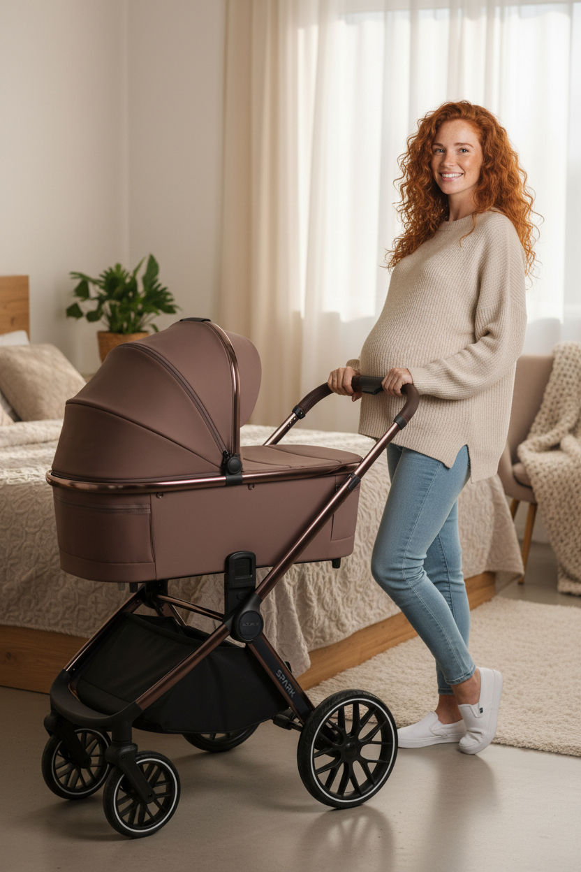 Dzięki przedniej i tylnej amortyzacji wózek zapewnia komfortową jazdę po wszystkich nawierzchniach, a teleskopowa rączka z szerokim zakresem regulacji dostosowuje się do wzrostu każdego rodzica