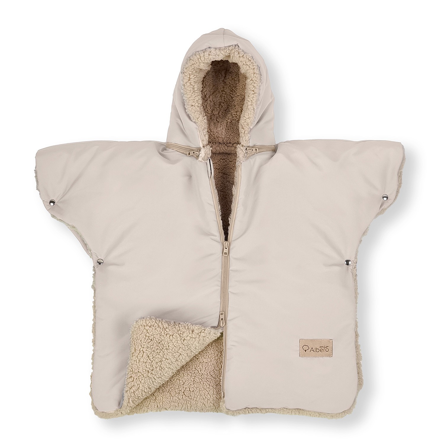 Kombinezonik z kapturem Ponczo samochodowe Albero Mio T2 Teddy Beżowy ocieplany śpiworek do fotelika
