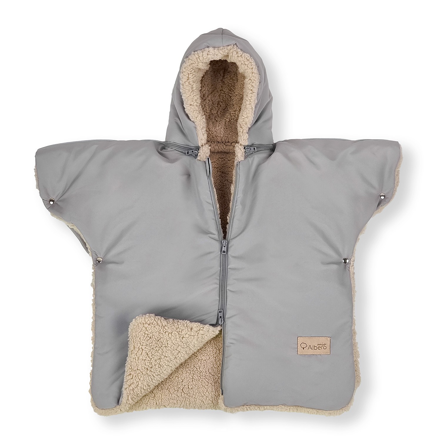 Kombinezonik z kapturem Ponczo samochodowe Albero Mio T3 Teddy Popiel ocieplany śpiworek do fotelika