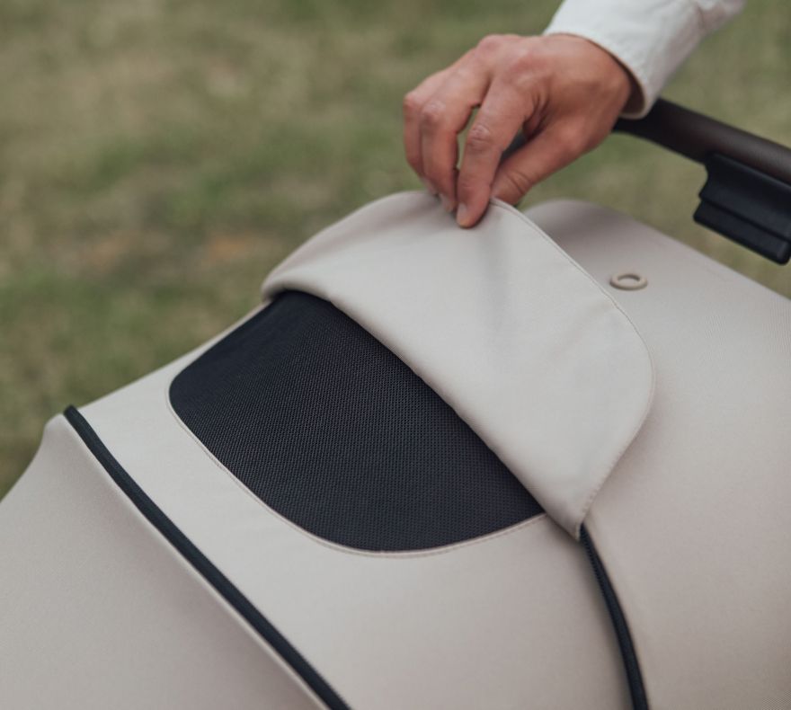 Materiał budki blokuje aż 98% promieni słonecznych, chroniąc delikatną skórę dziecka.