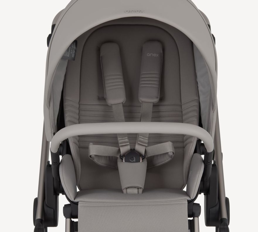Siedzisko spacerowe w wózku Anex Eli w niczym nie odstaje od konkurencji. Wysoka funkcjonalność przejawia się między innymi w możliwości przepięcia siedziska i ustawienia go przodem lub tyłem do rodzica.