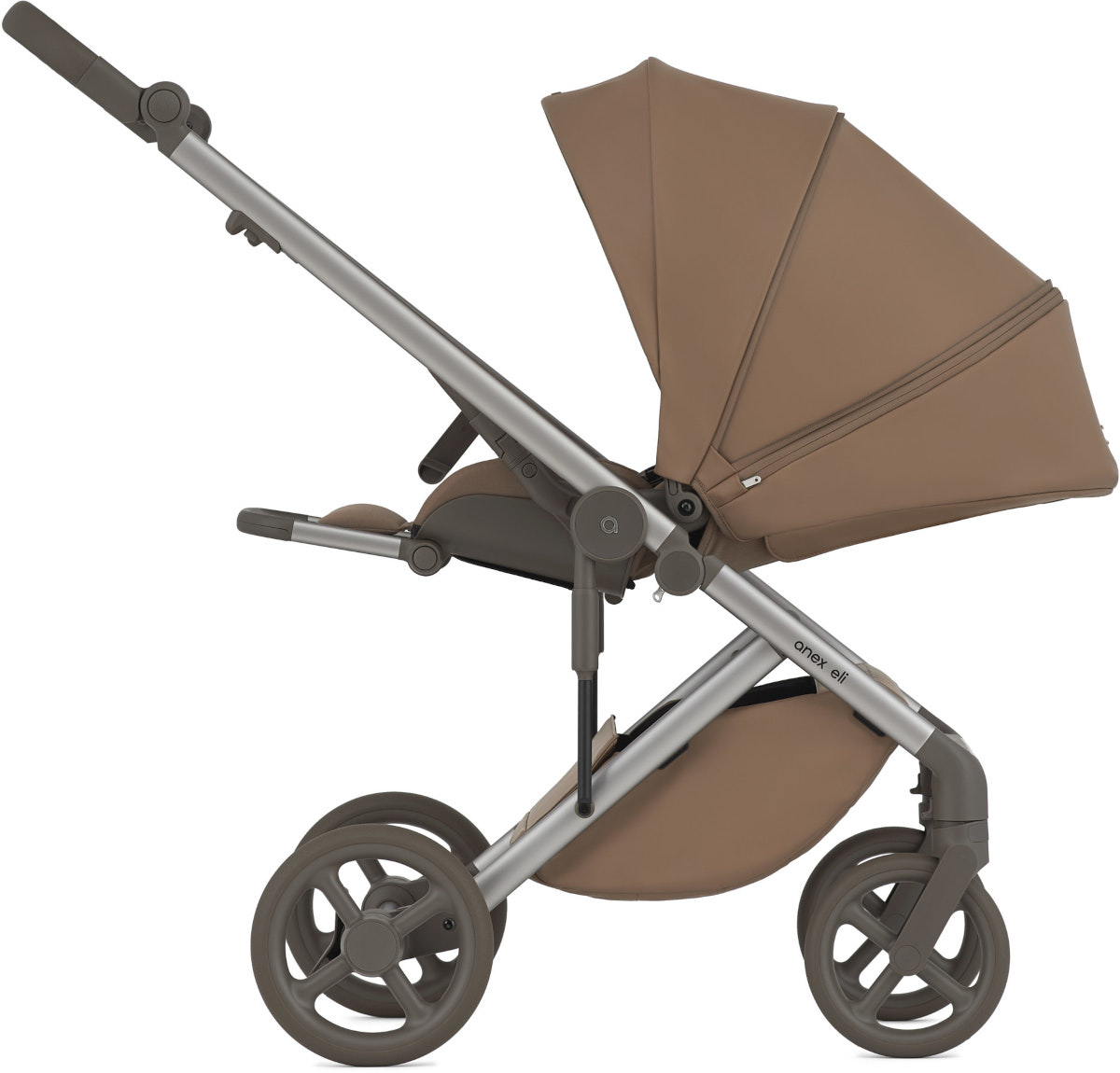 Siedzisko spacerowe w wózku Anex Eli w niczym nie odstaje od konkurencji. Wysoka funkcjonalność przejawia się między innymi w możliwości przepięcia siedziska i ustawienia go przodem lub tyłem do rodzica.
