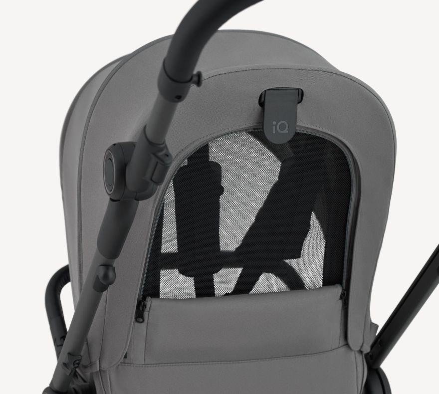 Budka w wózku odgrywa bardzo ważną rolę ochronną. Ta w modelu IQ jest wykonana z najwyższej jakości materiałów, co doskonale sprawdza się podczas długiego korzystania z wózka zarówno latem jak i zimą.