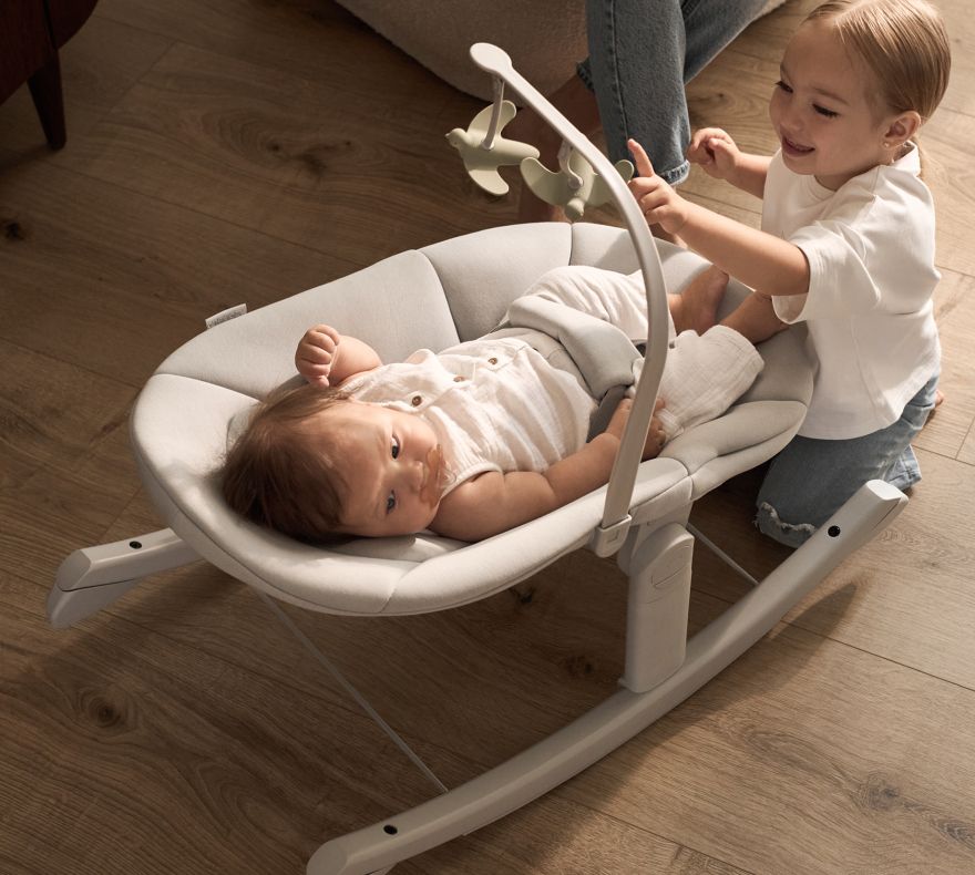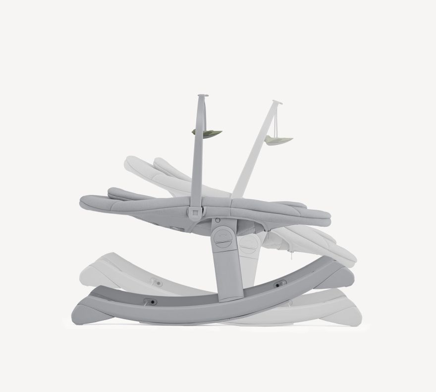 Elastyczna konstrukcja pozwala na zablokowanie kołysania, dzięki czemu podstawka pozostaje nieruchoma, gdy maluch potrzebuje stabilnego miejsca do karmienia lub głębokiego odpoczynku.