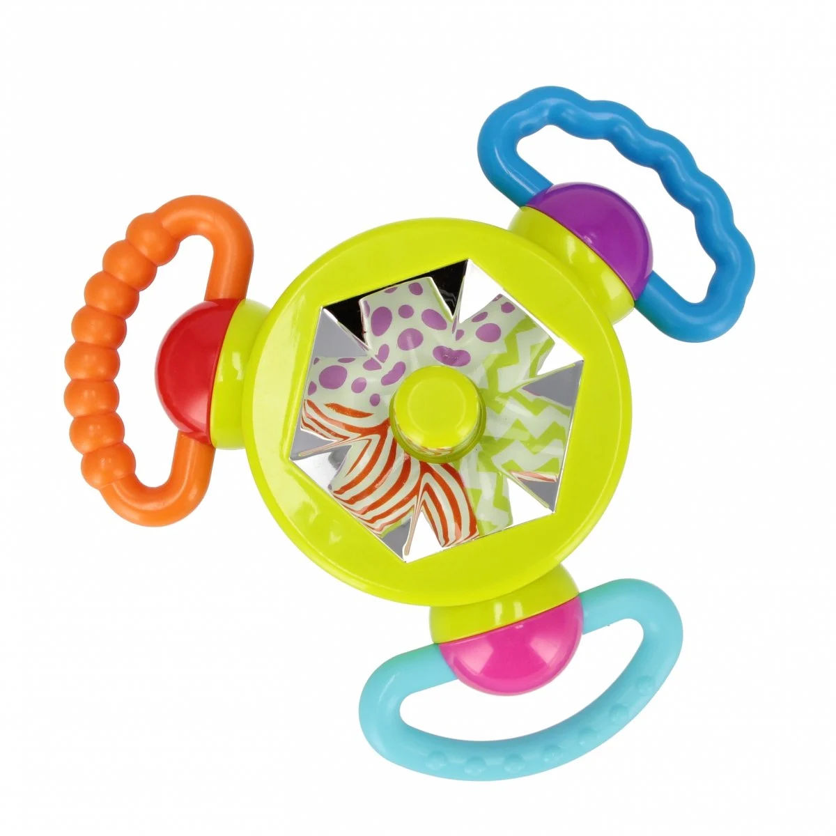 Obracanie i potrząsanie grzechotką pozwala maluchowi odkrywać migoczące kolory i kształty, jednocześnie rozwijając zmysł wzroku, słuchu oraz motorykę małą. Zabawka rozwija percepcję wzrokową i słuchową, ćwiczy koordynację ręka oko i motorykę, pobudza ciekawość i zmysł odkrywania, wspiera naukę przyczynowo skutkową poprzez zabawę.