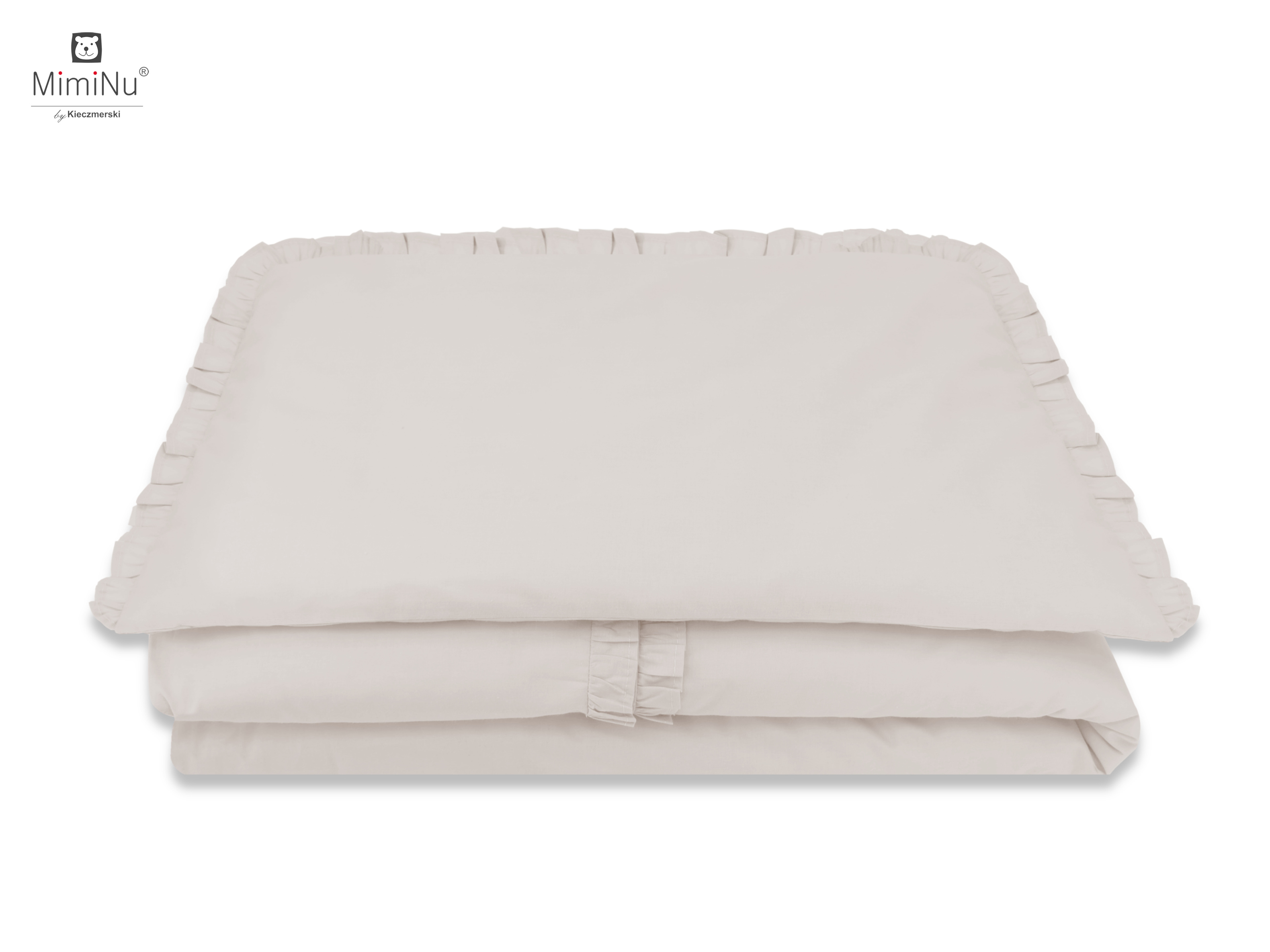 Bawełniana pościel dziecięca 2 elementowa poszewka na kołdrę 135x100 cm poduszkę 60x40 cm MimiNu ROYAL Beżowy z falbankąBawełniana pościel dziecięca 2 elementowa poszewka na kołdrę 135x100 cm poduszkę 60x40 cm MimiNu ROYAL Beżowy z falbanką