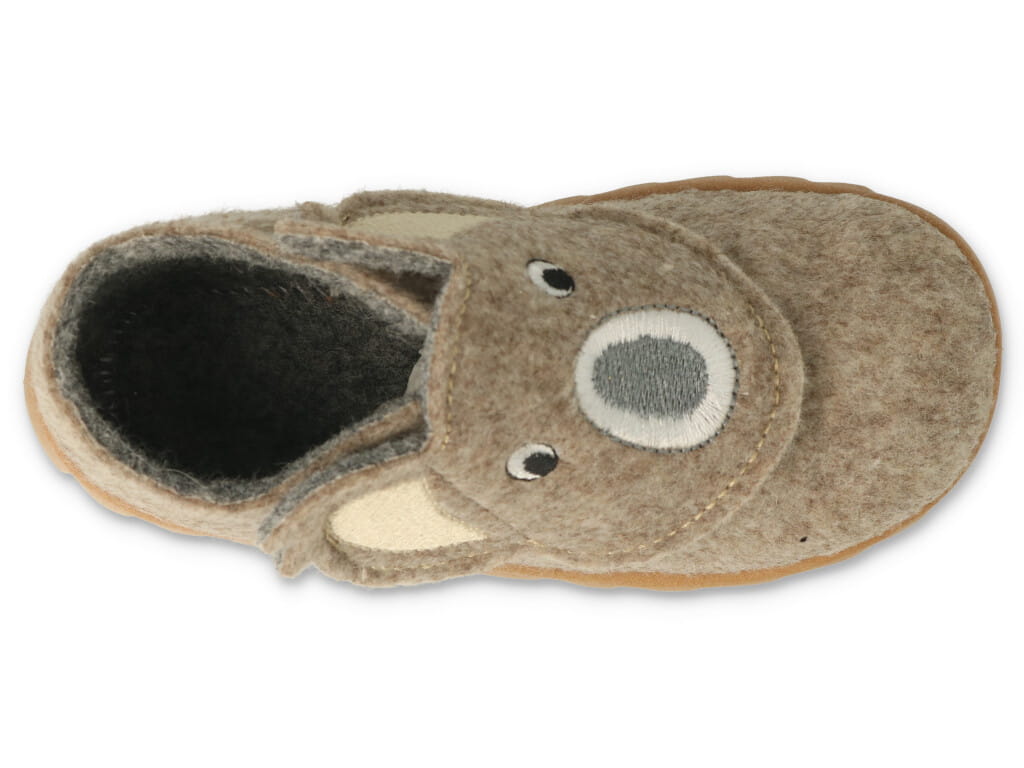 Urocze i ciepłe kapcie dla Twojego maluszka! Wykonane z filcu posiadającego właściwości oddychające. Ponadto filc to bardzo wytrzymały materiał odporny na rozciąganie. Wyższa cholewka chroni kostkę, a wzmocniony zapiętek spełnia wymogi prawidłowego obuwia dla najmłodszych dzieci.