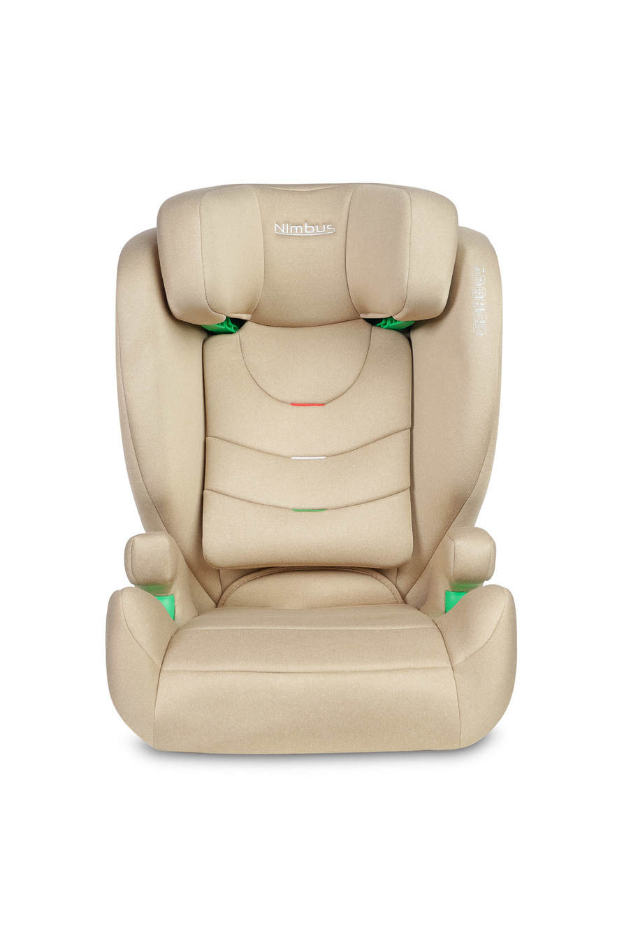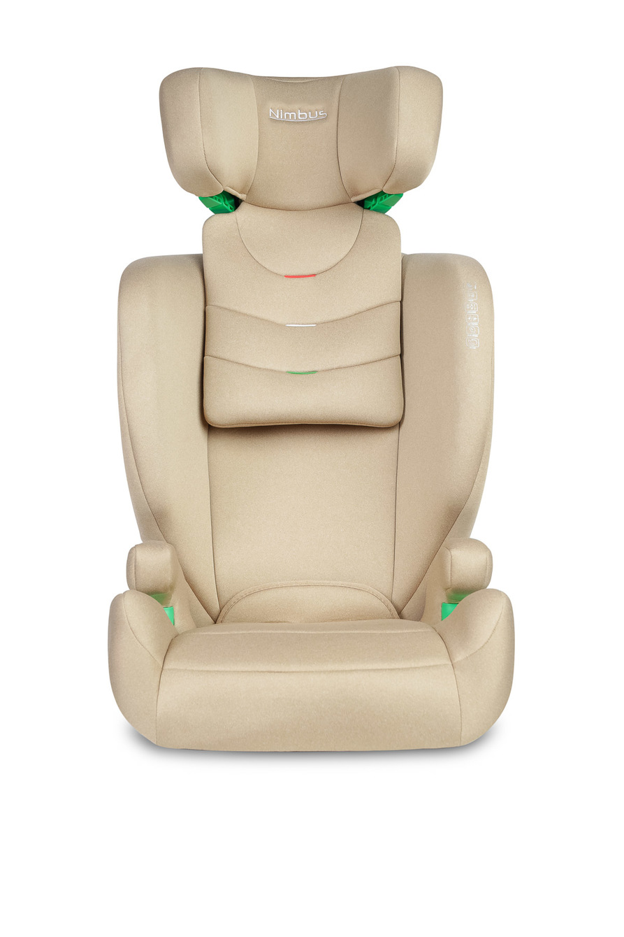 Fotelik samochodowy Nimbus to fotelik i-Size przeznaczony dla starszych dzieci o wzroście od 100 do 150 cm (odpowiadający wiekowi ok. 4 do 12 lat). Jest montowany za pomocą pasów samochodowych i IsoFix, aby zapewnić bezpieczną podróż pociechom, a delikatnie odchylane oparcie pozwala na optymalny montaż w różnych pojazdach. Wygodną podróż gwarantuje 11 stopniowa regulacja zagłówka oraz 2 stopniowa regulacja nachylenia siedziska. Tapicerka wykonana jest z miłej w dotyku poliestrowej tkaniny. Nimbus daje możliwość odpięcia oparcia, dzięki czemu można wykorzystać go również jako podstawkę (booster).