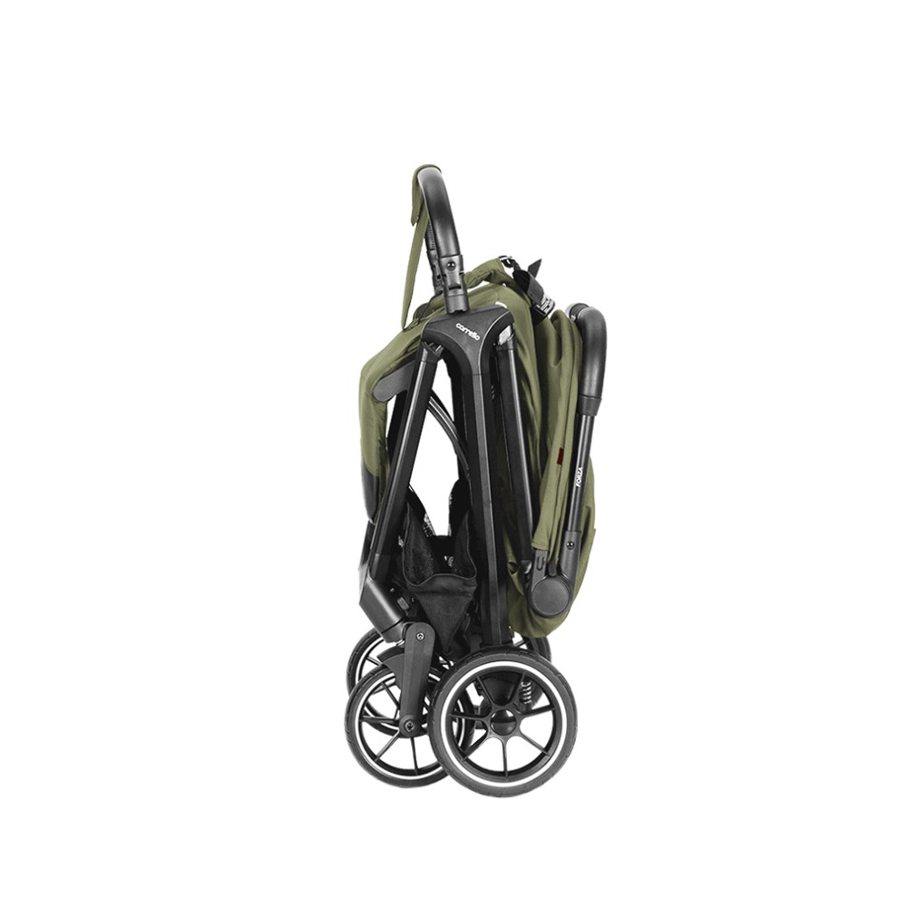 Kompaktowy wózek spacerowy z automatycznym składaniem i przemyślaną