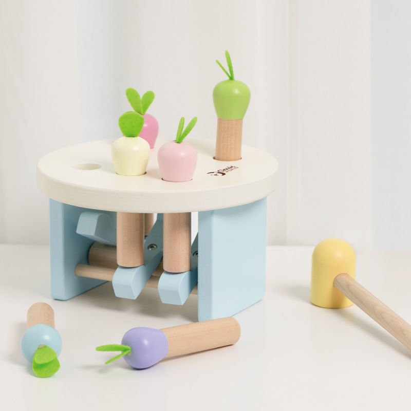 Gra zręcznościowa ''Wbij marchewkę'' od marki Classic World to rewelacyjna gra, która rozwija refleks, spostrzegawczość, zdolności manualne oraz zmysł wzroku u malucha. Delikatne pastelowe kolory, przyciągają wzrok i sprawiają, że dziecko chętniej sięga po zabawkę. Gra polega na ćwiczeniu zręczności u malucha, poprzez precyzyjne wbijanie marchewek, które wyskoczyły właśnie z dziurki. Zestaw zawiera 6 marchewek w różnych kolorach, młoteczek, uroczy stelaż w którym umieszczane są marchewki.