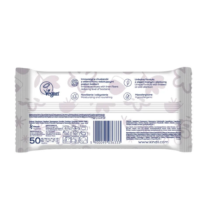 Chusteczki Kindii Linen Care przeznaczone są do pielęgnacji i delikatnej skóry niemowląt i dzieci. Innowacyjny skład oparty na oleju lnianym nawilża, koi i łagodzi podrażnienia. Produkt hypoalergiczny przebadany dermatologicznie, o pH neutralnym dla skóry. Bez kompozycji zapachowej