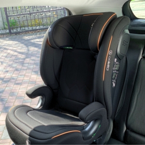 – można go zamontować w każdym samochodzie. Natomiast zielone prowadnice umieszczone w zagłówku pomagają w prawidłowym zapięciu dziecka.