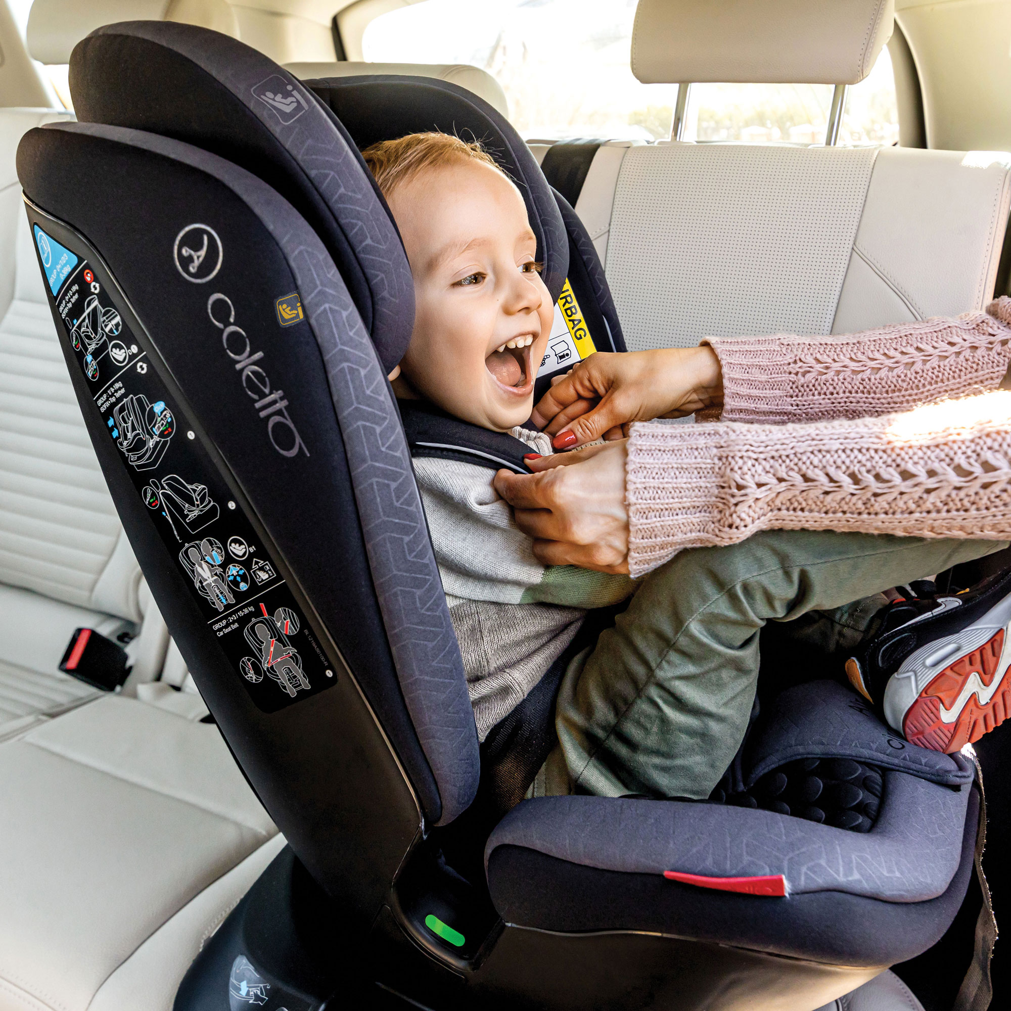 Ten elegancki i bezpieczny fotelik został zatwierdzony zgodnie z normą R129/03 do użytku przez dzieci o wzroście 40–150 cm. Montaż tyłem do kierunku jazdy od momentu osiągnięcia przez dziecko 40 cm do ok. 105 cm, czyli od narodzin do około 4 roku życia. Montaż przodem do kierunku jazdy dla dzieci o wzroście od 105–150 cm, czyli od 4 do 12 roku życia. Jedną ręką ustawisz fotelik przodem bądź tyłem do kierunku jazdy, bez konieczności jego demontażu.