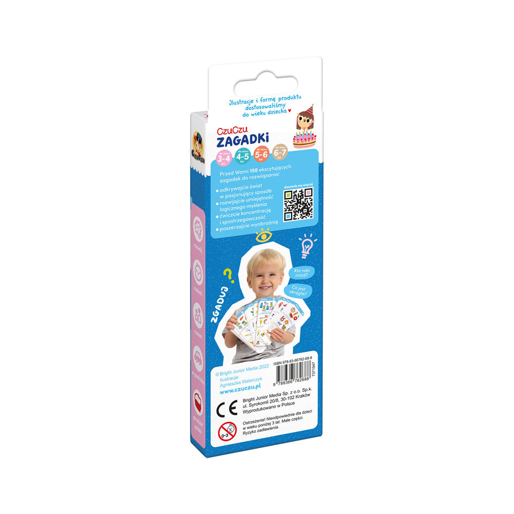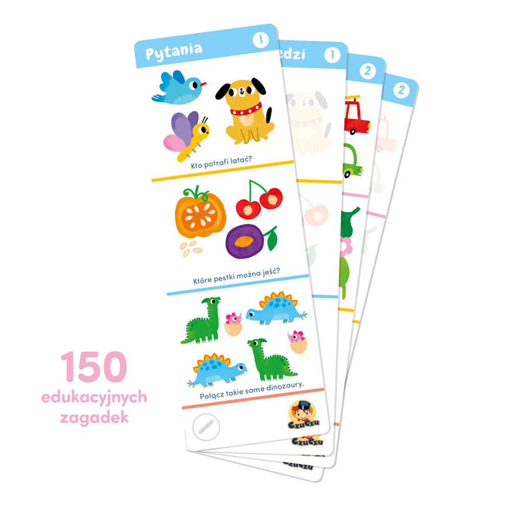 CzuCzu Zagadki dla dzieci w wieku 3-4 lat to doskonała książeczka dla ciekawego świata młodszego przedszkolaka. W wesoły sposób sprawdza i serwuje nową wiedzę.