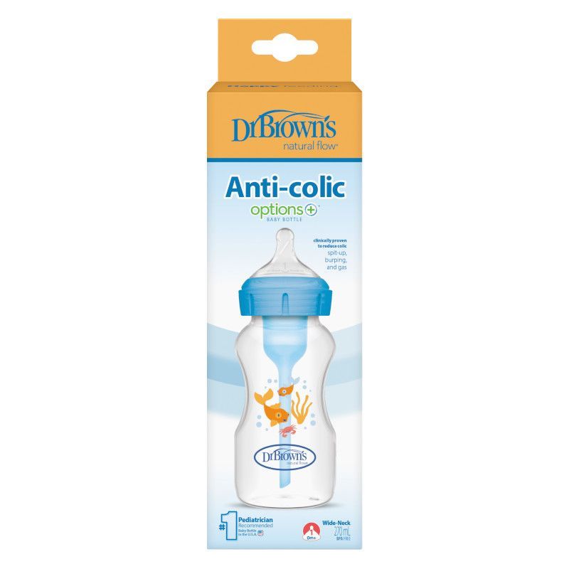Butelka szeroka szyjka 270ml Options+ niebieska, dekor morski WB91802 - Do użycia z systemem lub bez systemu odpowietrzającego