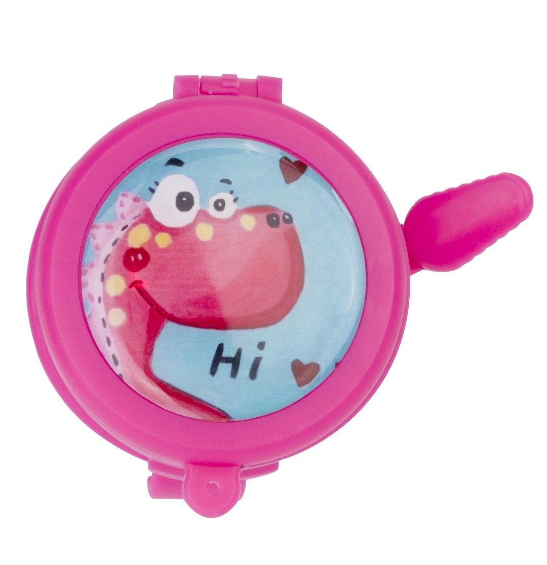 Dzwonek rowerowy dziecięcy z lusterkiem dzwonek na rower do hulajnogi głośny Dinozaur różowy