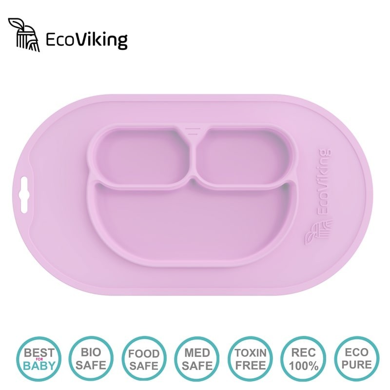 BLW 4 in 1 Eating Helper Eco Viking to silikonowy zestaw do nauki jedzenia składający się z talerzyka trójniaka z podkładką.