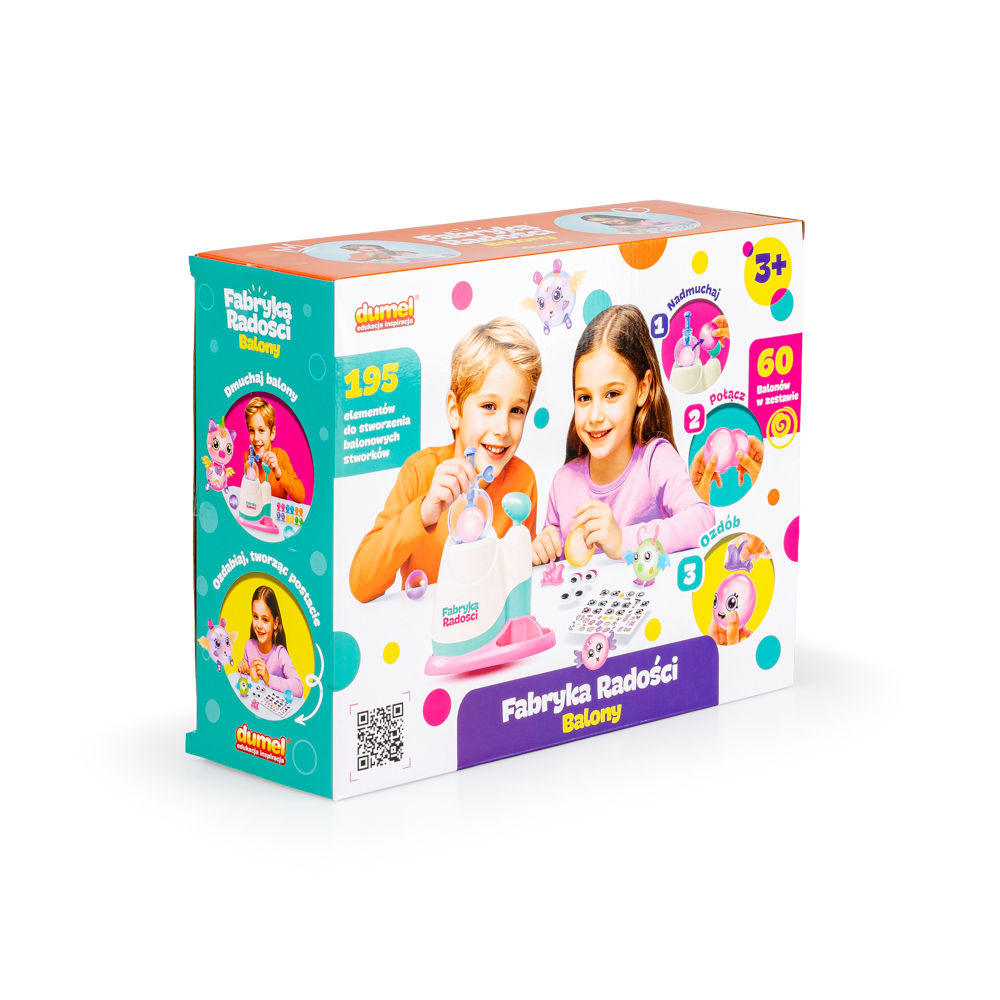 - w zestawie 195 elementów do stworzenia balonowych stworków (w tym: 60 balonów, 90 naklejek, 44 akcesoria oraz maszynka do balonów);
