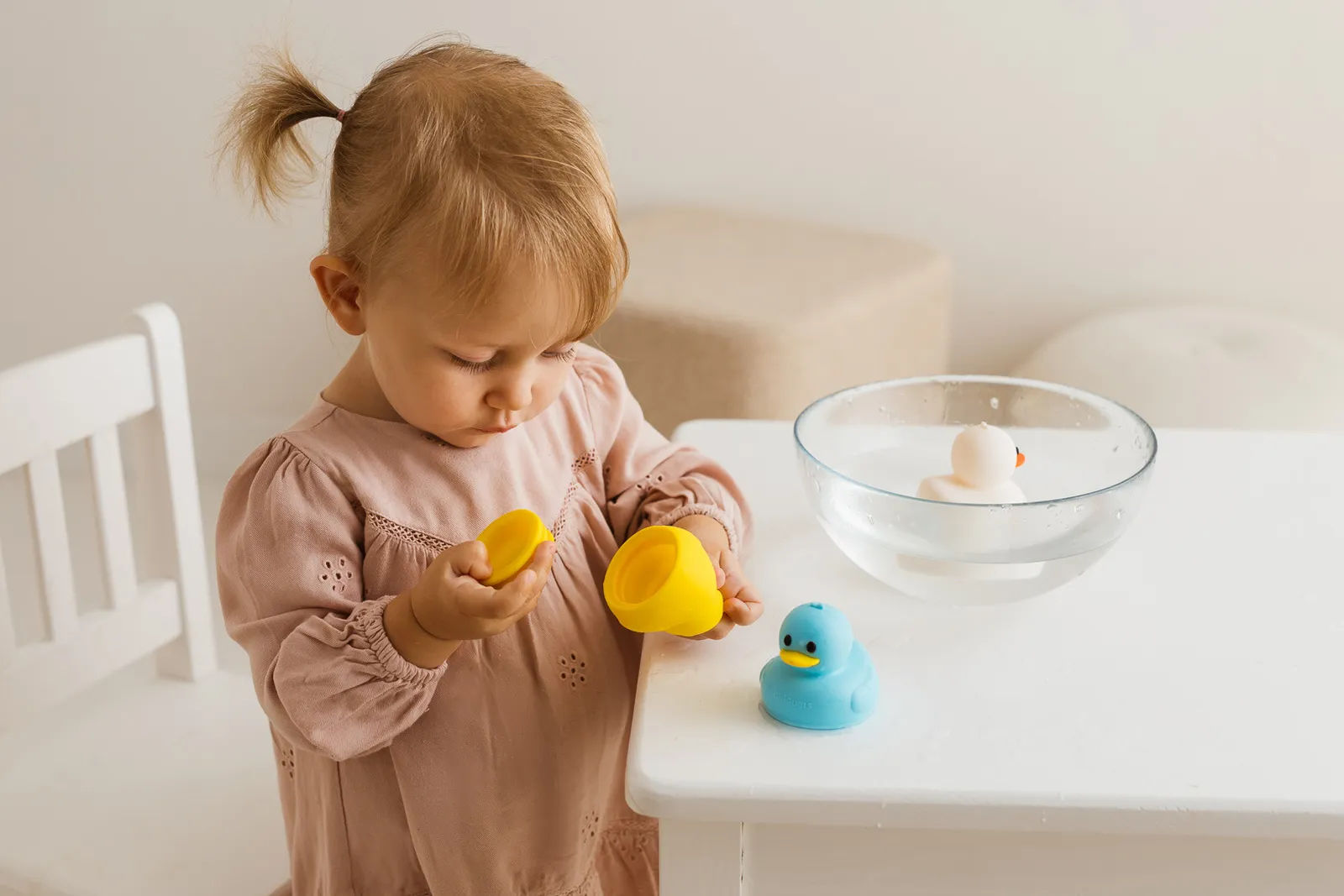 Mięciutkie kaczuszki umilą kąpiel, unosząc się wesoło na wodzie! Każda z zabawek posiada otwór w dzióbku, przez który można zassać wodę, aby po ściśnięciu, kaczucha trysnęła wesołym strumieniem . A co najlepsze, kaczuszki są wyjątkowo higieniczne, gdyż posiadając wyjmowany spód, dzięki czemu bez trudu wysuszysz je po zakończonej zabawie.
