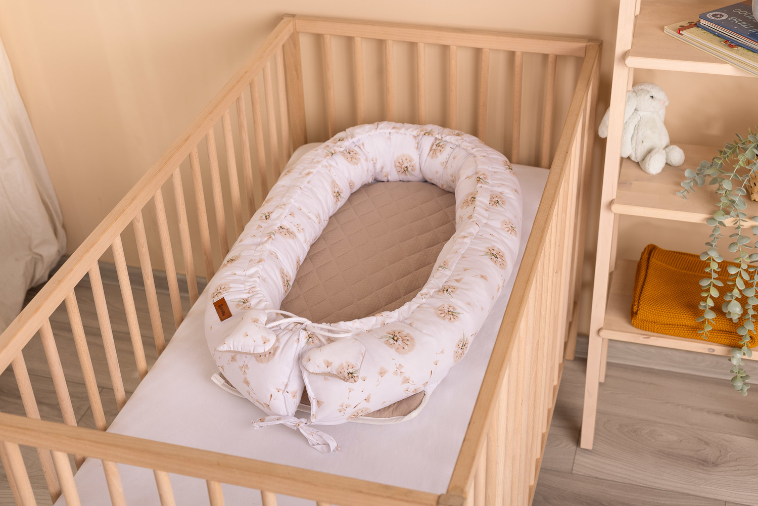 Kokon oferuje maluszkowi bezpieczne i przytulne miejsce zarówno do snu, jak i odpoczynku, skutecznie chroniąc przed przypadkowymi upadkami i sturlaniem się. Wypełnienie antyalergiczne oraz tkaniny przyjazne dla delikatnej skóry niemowlęcia zapewniają spokojny sen oraz zdrowe środowisko.