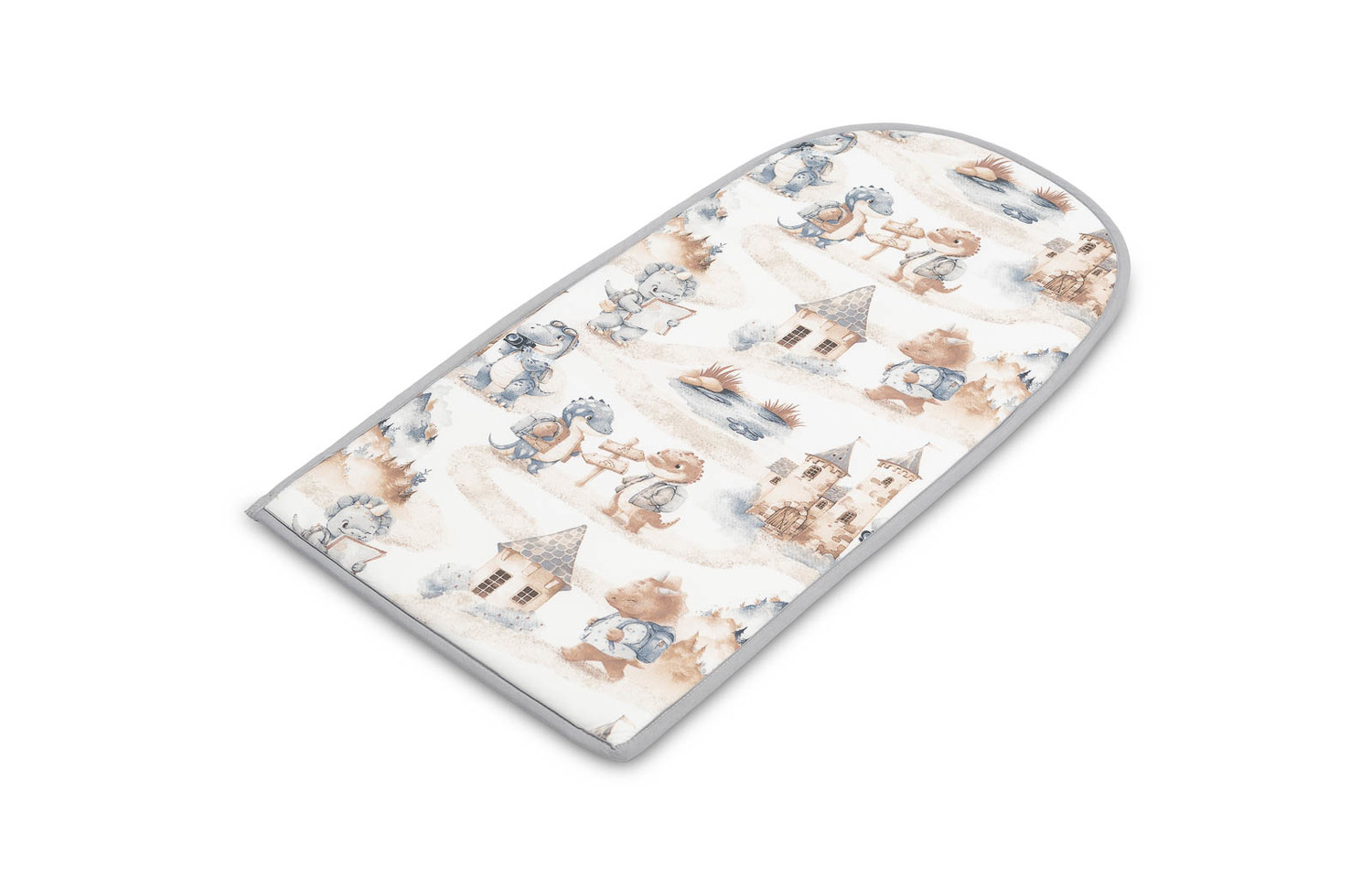 Podstawę kokonu stanowi wyjmowany materacyk, który z jednej strony pokryty jest tkaniną muślinową, a z drugiej delikatną bawełną z uroczym nadrukiem. Dzięki temu można dostosować stronę materacyka do zmieniających się potrzeb dziecka i warunków otoczenia.