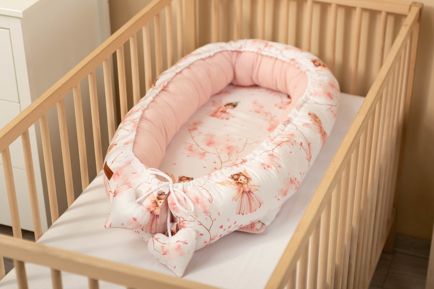 Kokon sprawdza się w wielu codziennych sytuacjach – zapewnia bezpieczeństwo w łóżku rodziców, chroniąc przed przypadkowym przygnieceniem, tworzy przytulną przestrzeń na kanapie, a w łóżeczku potęguje poczucie otulenia. Podczas podróży skutecznie zastępuje łóżeczko, oferując znajome i komfortowe otoczenie, gdziekolwiek się znajdujesz. Dzięki ściąganemu sznurkowi zakończonemu uroczymi serduszkami, łatwo dostosujesz rozmiar kokonu do aktualnych potrzeb Twojego maluszka.