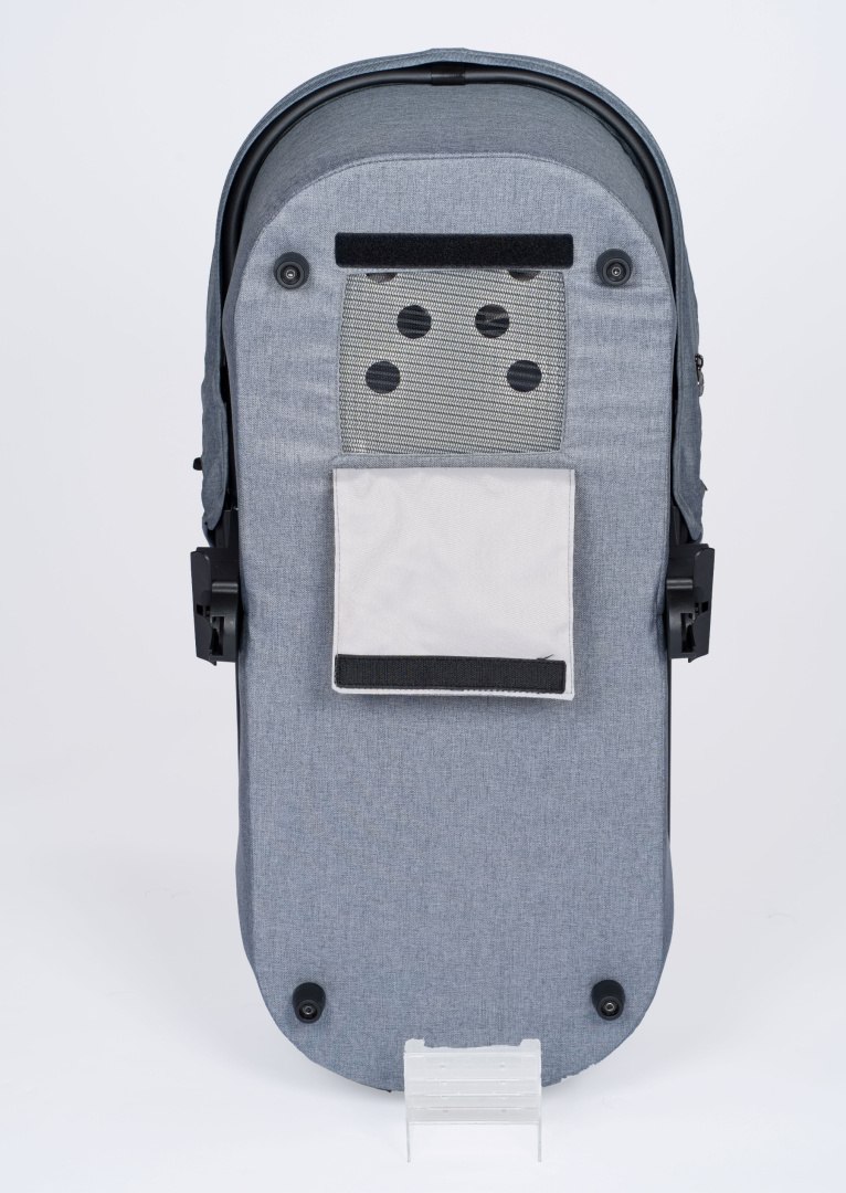 Nasz transparentny materac składa się z dwóch oddzielnych części: pierwsza to materac piankowy, w pełni perforowany; druga to siatka 3D mesh o grubości 1 cm. Ponieważ okienko wentylacyjne można również otworzyć na dnie gondoli, połączenie to zapewnia specjalną cyrkulację powietrza w celu zmniejszenia zastoju wilgoci. Materac jest grubszy w okolicy głowy niż w obszarze stóp, ta naturalna pozycja pomaga zmniejszyć refluks.