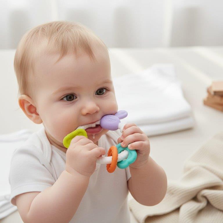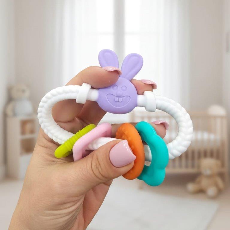 Silikonowy Gryzak Sensoryczny dla Niemowląt – Króliczek z Zawieszkami