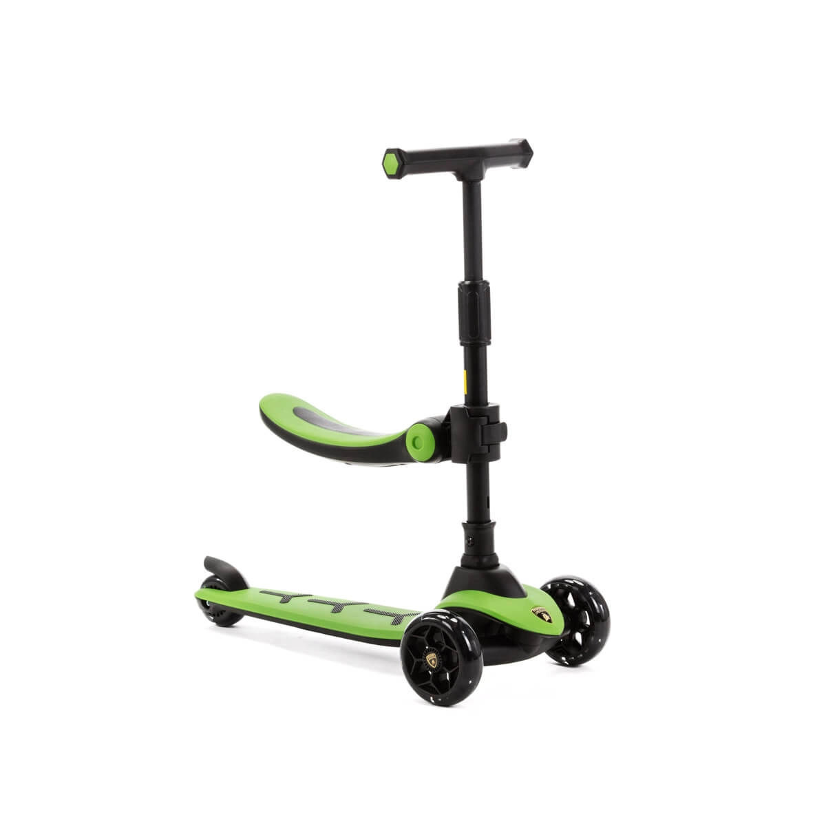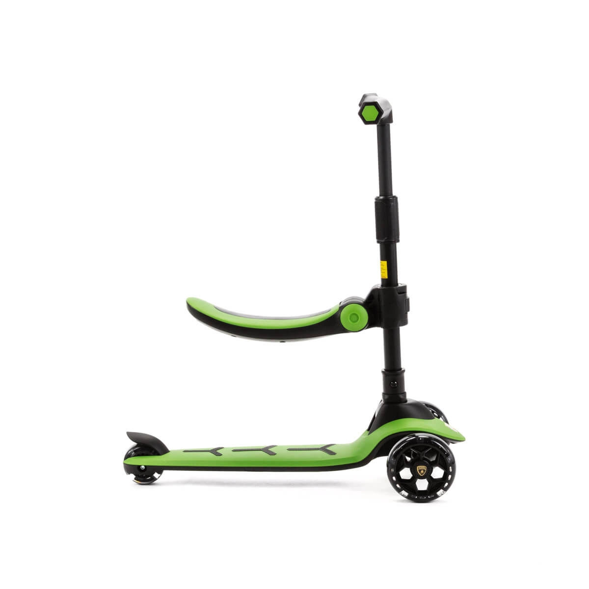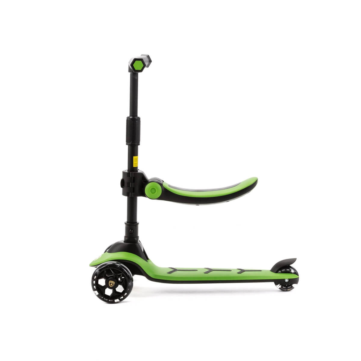 Hulajnoga Lamborghini 2w1 z siedziskiem to pojazd, który dzieci w łatwy sposób mogą dostosować do swoich umiejętności i wieku, przez co produkt rośnie wraz z dzieckiem. Najpierw maluch korzysta z jeździka z siedziskiem, a następnie z hulajnogi, co czyni pojazd zakupem na długie lata. • Wysokość wygodnego i wyprofilowanego siedziska jest regulowana, zatem najniższa pozycja (na wysokości 23 cm) sprawdzi się dla maluchów, które niedawno postawiły pierwsze kroki • Jeśli Twój maluch jest już odpowiednio duży, możesz zmienić jeździk w hulajnogę bez użycia żadnych narzędzi! Wystarczy zdjąć siedzisko, dobrać odpowiednią wysokość kierownicy i gotowe! • Kierownica posiada regulację wysokości co sprawia, że Twój maluch szybko z niej nie wyrośnie! • Możesz złożyć kierownicę do transportu jednym prostym ruchem, tak aby maksymalnie zminimalizować miejsce np. w bagażniku • Pojazd wykonany jest z wytrzymałych i solidnych materiałów (aluminium), czyniąc go stabilnym oraz bezpiecznym podczas jazdy. • Hulajnoga 2w1 posiada pod spodem przycisk odpowiadający za „miękkość” skrętu oraz możliwości manewrowych pojazdu - możesz go dostosować do umiejętności i preferencji swojego dziecka • Podest hulajnogi posiada antypoślizgowe elementy • Koła świecą podczas jazdy dzięki diodom LED umieszczonych w kołach (nie wymaga to użycia baterii). Świecące koła to lepsza widoczność podczas wieczornej zabawy, a poza tym.. które dziecko nie chciałoby mieć świecących kółek w hulajnodze? • Tylne koło posiada błotnik oraz hamulec nożny • Pojazd produkowany na licencji luksusowej marki supersamochodów Lamborghini to doskonały pomysł na prezent. Nie dość, że hulajnoga występuje w 4 najpopularniejszych kolorach marki, to produkt zapakowany jest w poręczne i estetyczne pudełko prezentowe. Informacje dodatkowe: – do ok. 2-3 lat z siedziskiem (max. 20 kg) – hulajnoga 3+ (max. 50 kg) – waga z siedziskiem 3,6 kg, waga samej hulajnogi 2,8 kg – regulowana wysokość kierownicy: 60, 64, 70, 77 cm – regulowana wysokość siedziska: 24, 26, 30, 37 cm