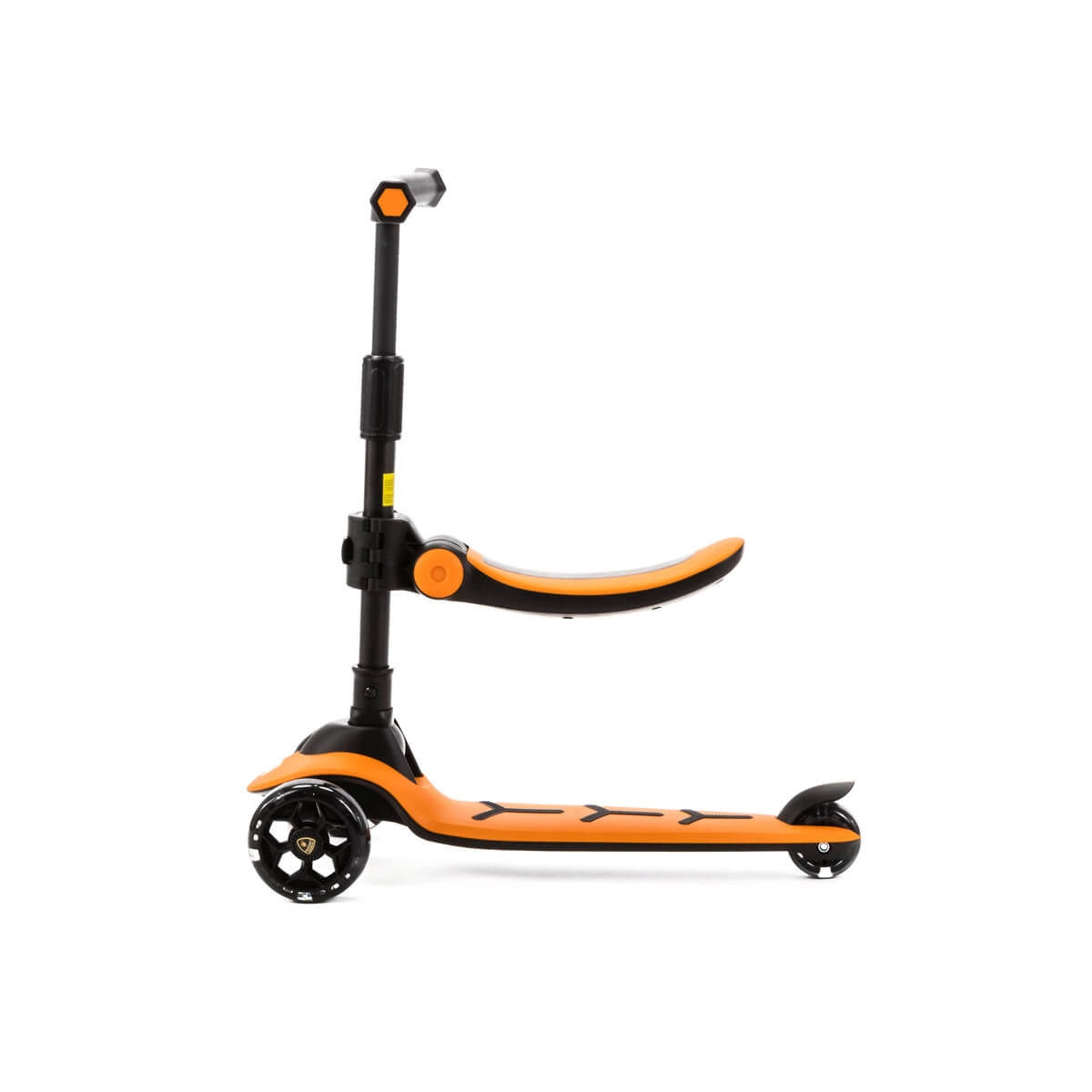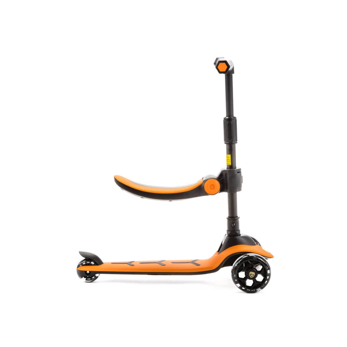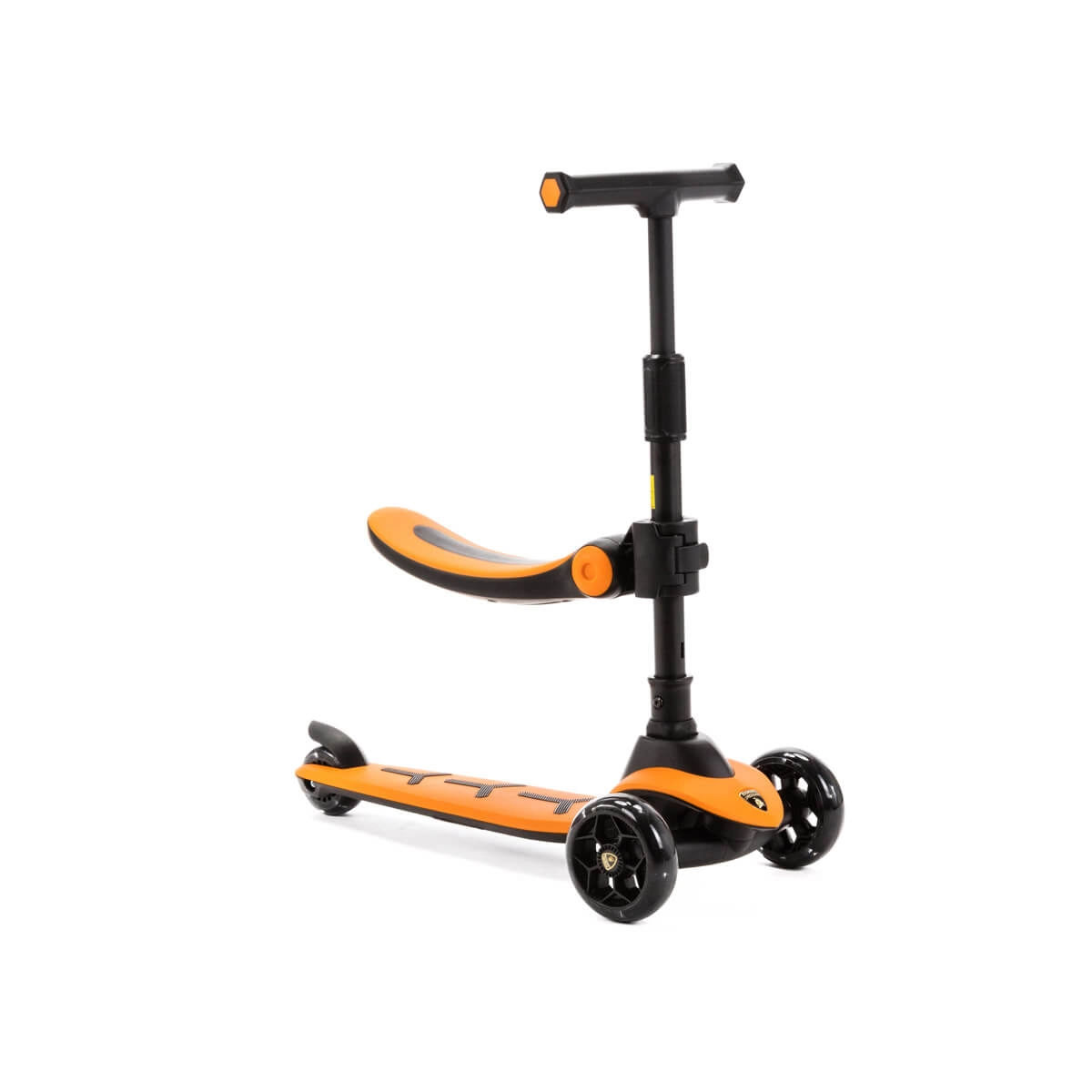 Hulajnoga Lamborghini 2w1 z siedziskiem to pojazd, który dzieci w łatwy sposób mogą dostosować do swoich umiejętności i wieku, przez co produkt rośnie wraz z dzieckiem. Najpierw maluch korzysta z jeździka z siedziskiem, a następnie z hulajnogi, co czyni pojazd zakupem na długie lata. • Wysokość wygodnego i wyprofilowanego siedziska jest regulowana, zatem najniższa pozycja (na wysokości 23 cm) sprawdzi się dla maluchów, które niedawno postawiły pierwsze kroki • Jeśli Twój maluch jest już odpowiednio duży, możesz zmienić jeździk w hulajnogę bez użycia żadnych narzędzi! Wystarczy zdjąć siedzisko, dobrać odpowiednią wysokość kierownicy i gotowe! • Kierownica posiada regulację wysokości co sprawia, że Twój maluch szybko z niej nie wyrośnie! • Możesz złożyć kierownicę do transportu jednym prostym ruchem, tak aby maksymalnie zminimalizować miejsce np. w bagażniku • Pojazd wykonany jest z wytrzymałych i solidnych materiałów (aluminium), czyniąc go stabilnym oraz bezpiecznym podczas jazdy. • Hulajnoga 2w1 posiada pod spodem przycisk odpowiadający za „miękkość” skrętu oraz możliwości manewrowych pojazdu - możesz go dostosować do umiejętności i preferencji swojego dziecka • Podest hulajnogi posiada antypoślizgowe elementy • Koła świecą podczas jazdy dzięki diodom LED umieszczonych w kołach (nie wymaga to użycia baterii). Świecące koła to lepsza widoczność podczas wieczornej zabawy, a poza tym.. które dziecko nie chciałoby mieć świecących kółek w hulajnodze? • Tylne koło posiada błotnik oraz hamulec nożny • Pojazd produkowany na licencji luksusowej marki supersamochodów Lamborghini to doskonały pomysł na prezent. Nie dość, że hulajnoga występuje w 4 najpopularniejszych kolorach marki, to produkt zapakowany jest w poręczne i estetyczne pudełko prezentowe. Informacje dodatkowe: – do ok. 2-3 lat z siedziskiem (max. 20 kg) – hulajnoga 3+ (max. 50 kg) – waga z siedziskiem 3,6 kg, waga samej hulajnogi 2,8 kg – regulowana wysokość kierownicy: 60, 64, 70, 77 cm – regulowana wysokość siedziska: 24, 26, 30, 37 cm