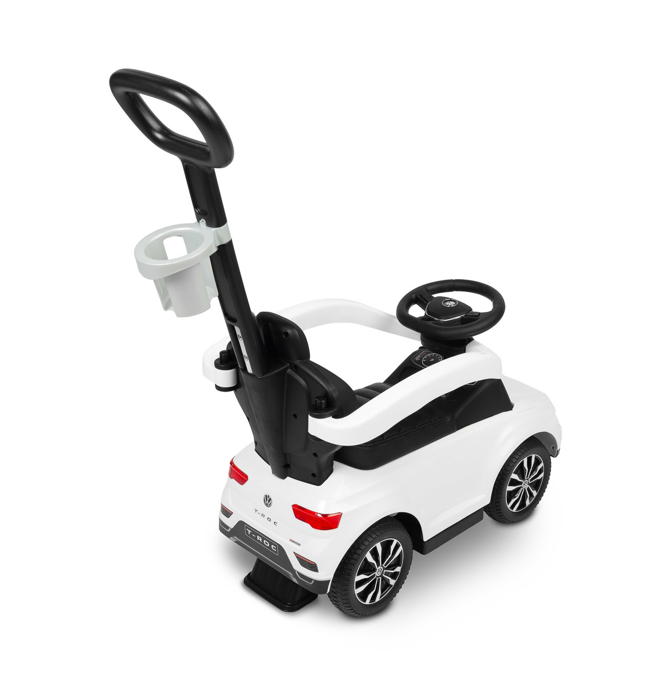 Pozwól swojemu dziecku odkrywać świat w wygodny i bezpieczny sposób dzięki jeździkowi T-Roc. Wyposażony w ciche i trwałe koła z pianki EVA, doskonale sprawdza się zarówno w domu, jak i na zewnątrz. Komfort malucha zapewnia ergonomiczne siedzisko pokryte miękką ekoskórą, które nie tylko wygląda elegancko, ale jest też łatwe w czyszczeniu. Siedzisko posiada funkcję otwierania, a w jego wnętrzu znajduje się praktyczny schowek. Stopka w tylnej części blokuje pojazd przed wywróceniem się, w niebezpiecznej sytuacji blokada opiera się na podłożu i stabilizuje jeździk.