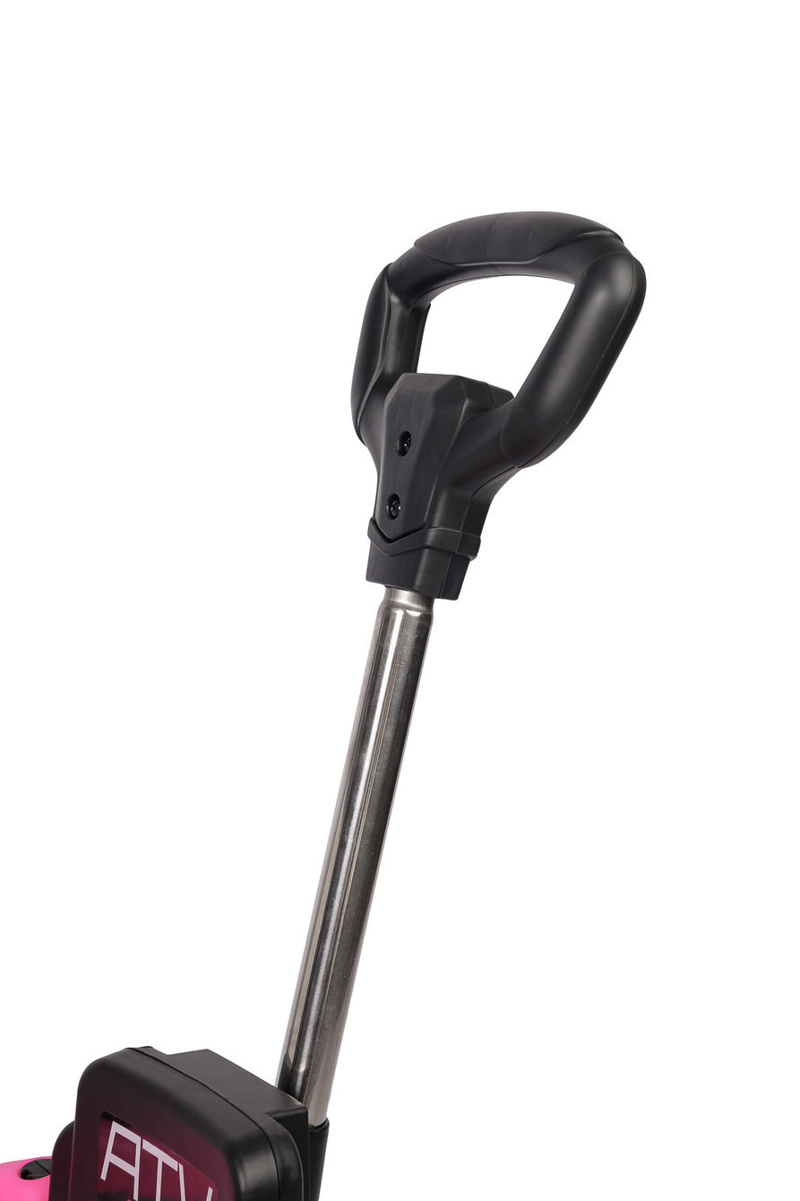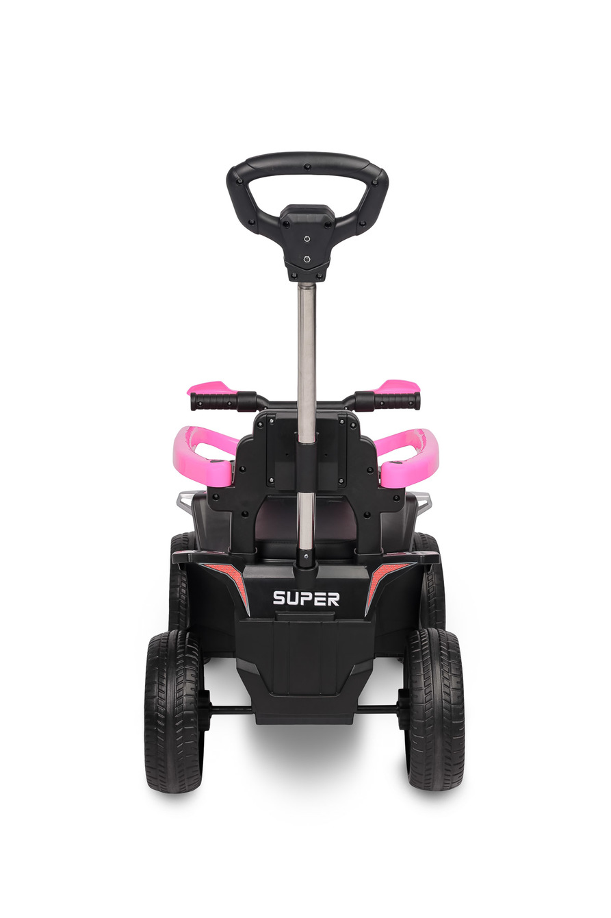Jeździk wyposażony jest w solidną metalową rączkę do prowadzenia, która zapewnia rodzicom pełną kontrolę nad pojazdem podczas spacerów lub w trakcie nauki jazdy. Metalowa konstrukcja jest znacznie trwalsza i stabilniejsza od plastikowych odpowiedników. Rączkę można łatwo odczepić, zamieniając jeździk w samodzielny pojazd dla starszaków.