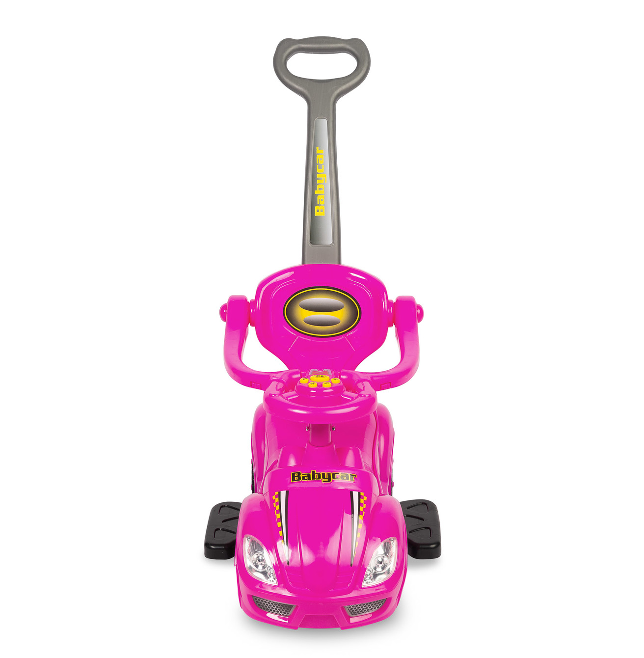 Rewelacyjny jeździk, pchacz Race Car to nie lada gratka dla małych kierowców. Wykonany z solidnych i wytrzymałych materiałów, zapewniających długotrwałe użytkowanie. W przypadku starszych dzieci podnóżki, barierkę i rączkę można zdemontować. Model został wyposażony w panel dźwiękowy. Jeździk pomaga rozwijać umiejętności motoryczne dziecka, a także gwarantuje dużo zabawy i radości. Specjalna "stopka" w tylnej części jeździka, stabilizuje pojazd i blokuje go przed wywróceniem się.