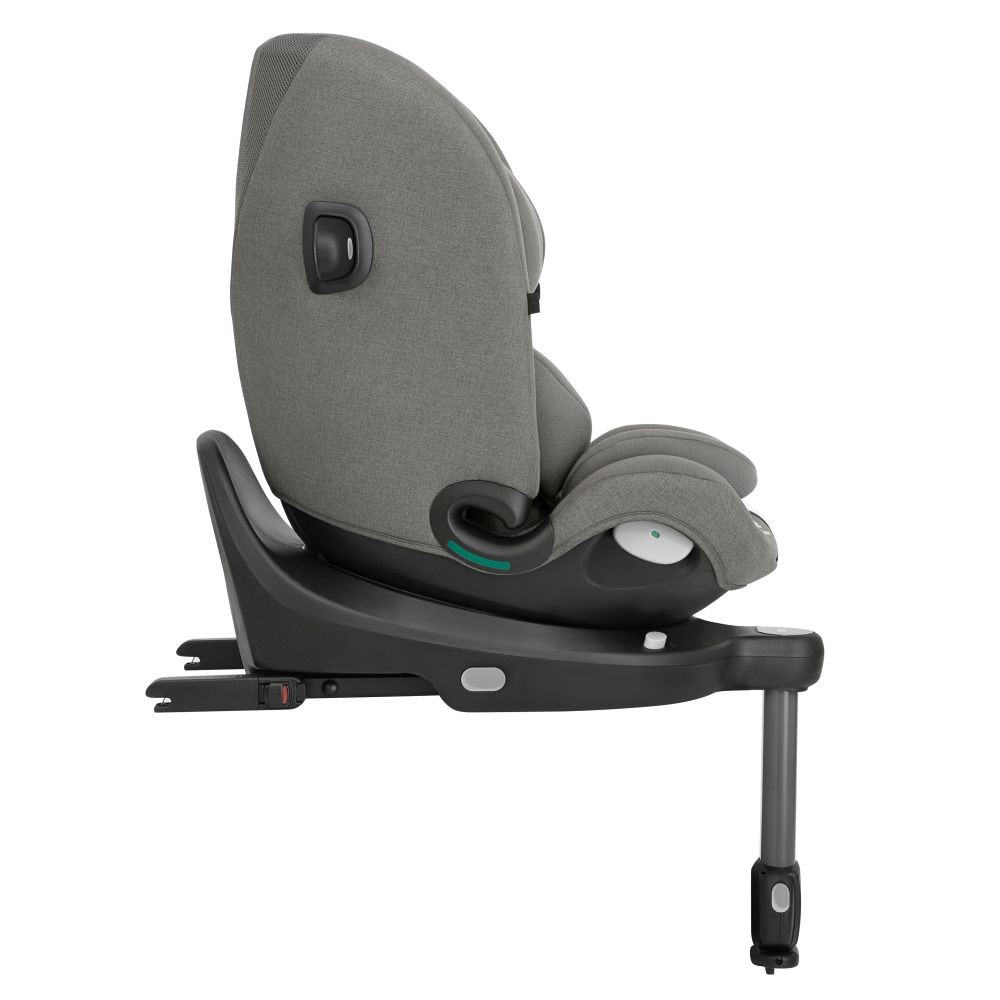 Obrót siedziska o 360º ułatwia wkładanie i wyjmowanie dziecka. Możliwość używania nogi stabilizującej w trybie fotelika podwyższającego. Blokada Smart Ride™ utrzymuje fotelik w trybie tyłem do kierunku jazdy aż do osiągnięcia wymaganego 15 miesiąca życia. Fotelik posiada wskaźniki poprawnego montażu Isofix oraz podpórki.