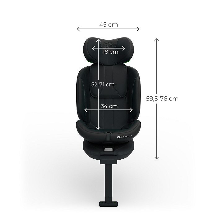 Kinderkraft i-360 2 Plus i-Size Black obrotowy fotelik samochodowy dla dziecka 40-150 cm, 0-12 lat