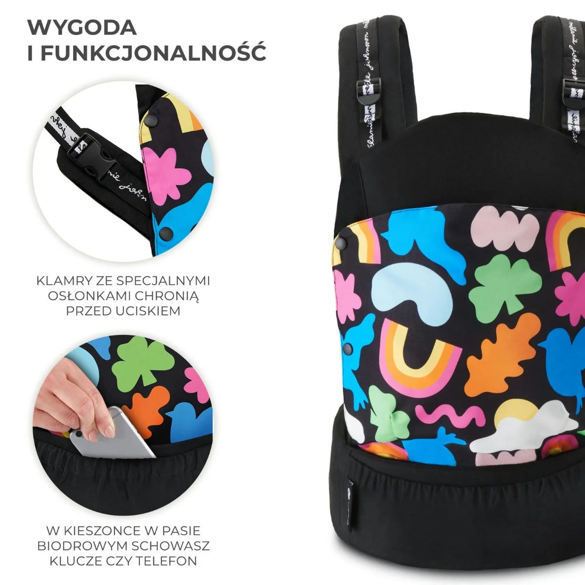 - Wspiera zdrowy rozwój bioderek - potwierdzone certyfikatem IHDI (2 pozycje noszenia)
