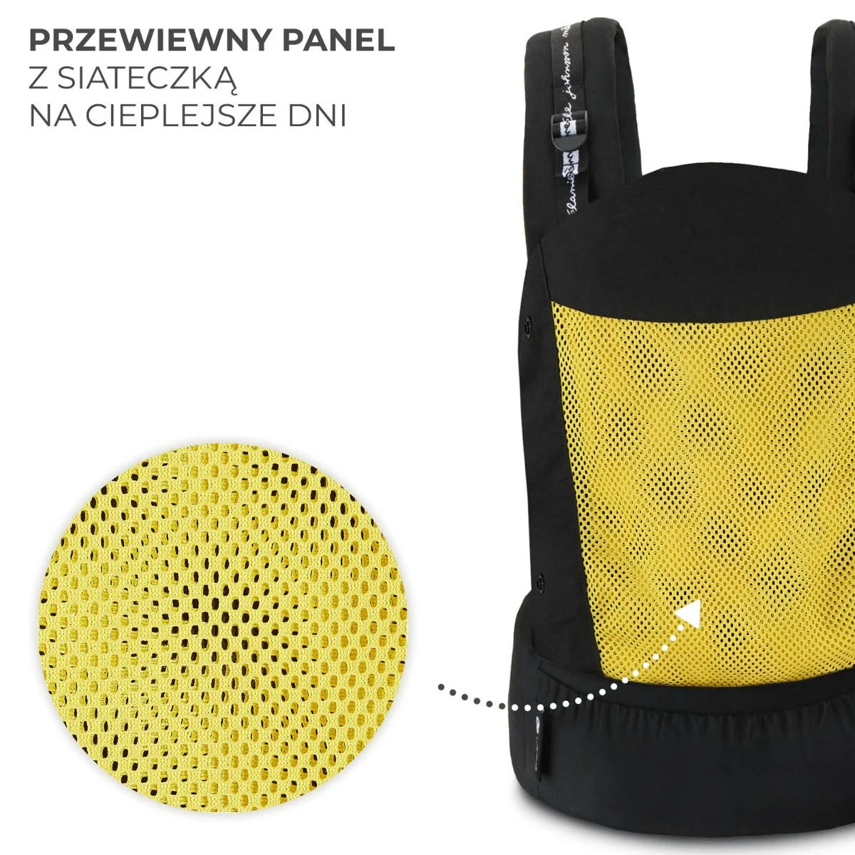 HUGGY jest idealny na każdą pogodę. Gdy zrobi się ciepło, materiał panelu możemy łatwo odpiąć i korzystać z przewiewnej siateczki.