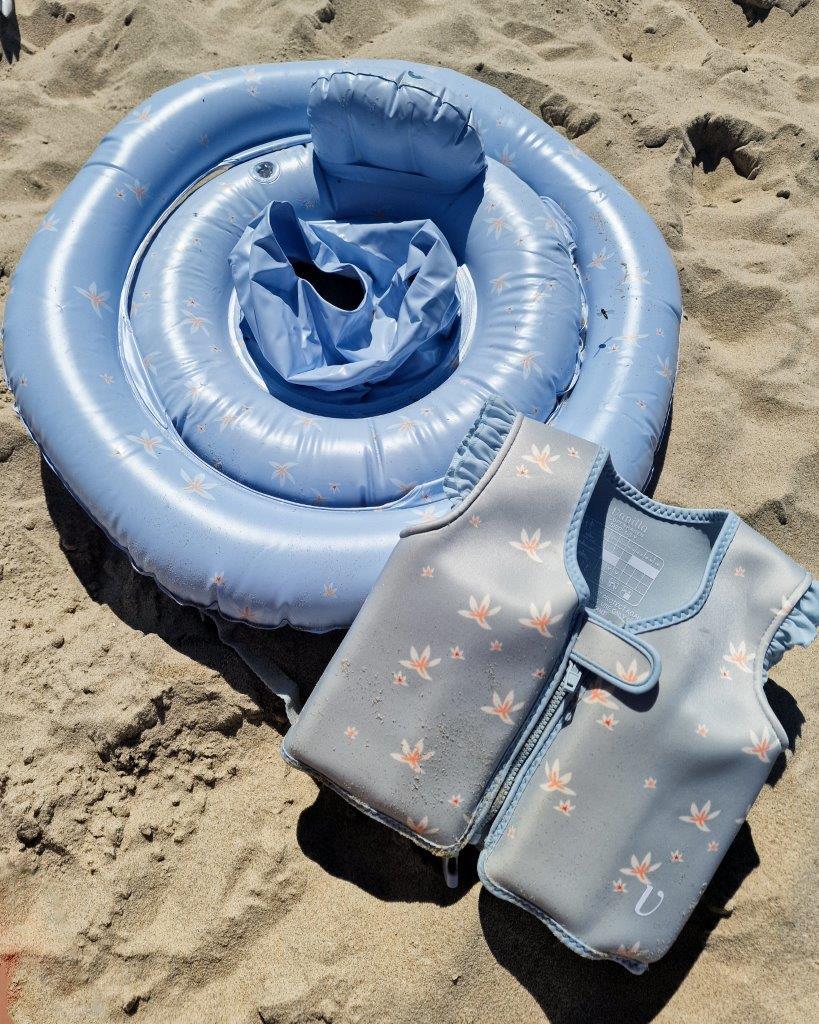Koło w kolorze błękitnym w urocze lilie, które pomagają stymulować zainteresowanie dziecka wodą i zabawą. Koło do kąpieli może być używane na basenie, na plaży lub w brodziku w ogrodzie. Podwójne komory zapewniają dodatkową stabilność i bezpieczeństwo, dzięki czemu możesz cieszyć się każdą chwilą pluskania się z dzieckiem.