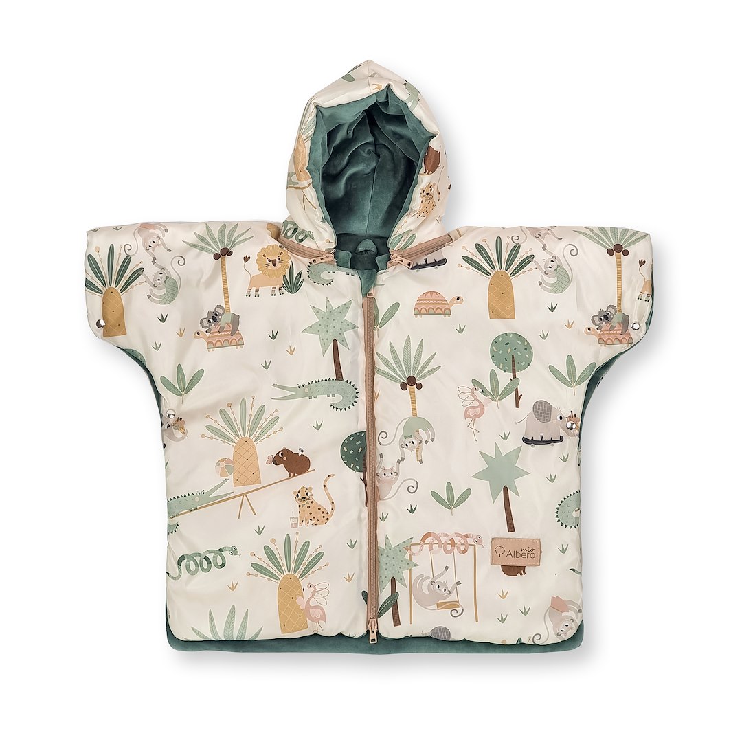 Ponczo samochodowe to alternatywa dla kurtek i kombinezonów, daje możliwość prawidłowego zapięcia pasów w foteliku samochodowym, a przy tym zapewniając ciepło i miłe otulenie dziecku.