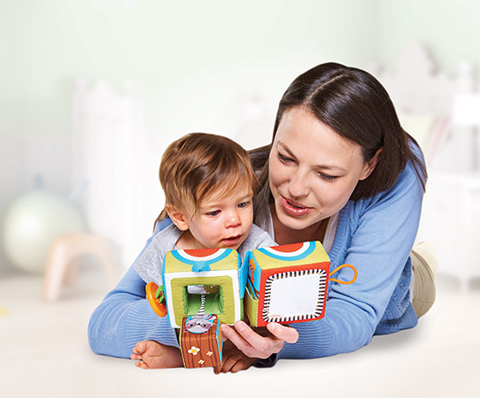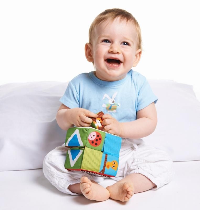 Pozwól dziecku odkryć różne funkcje Kostki samodzielnie i podrzucać kostkę z jednej strony na drugą.