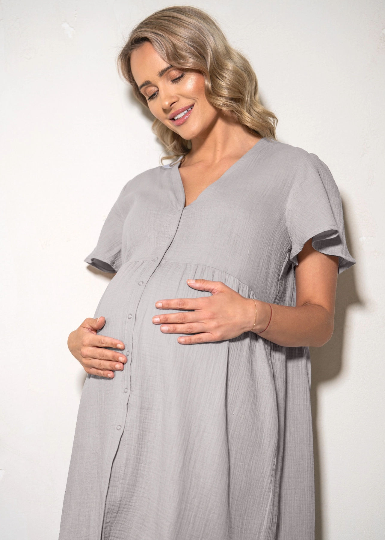 Koszula dostępna w kilku subtelnych kolorach, które podkreślają naturalne piękno przyszłej mamy.